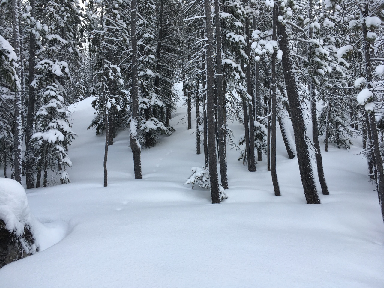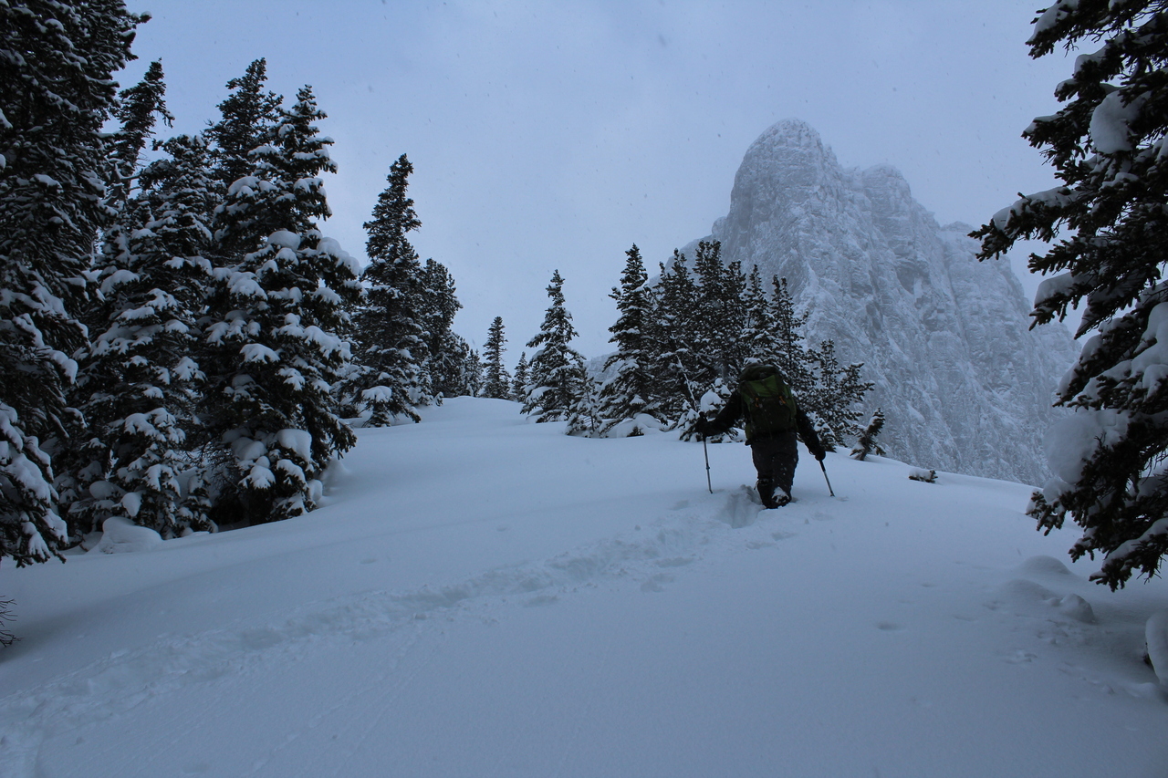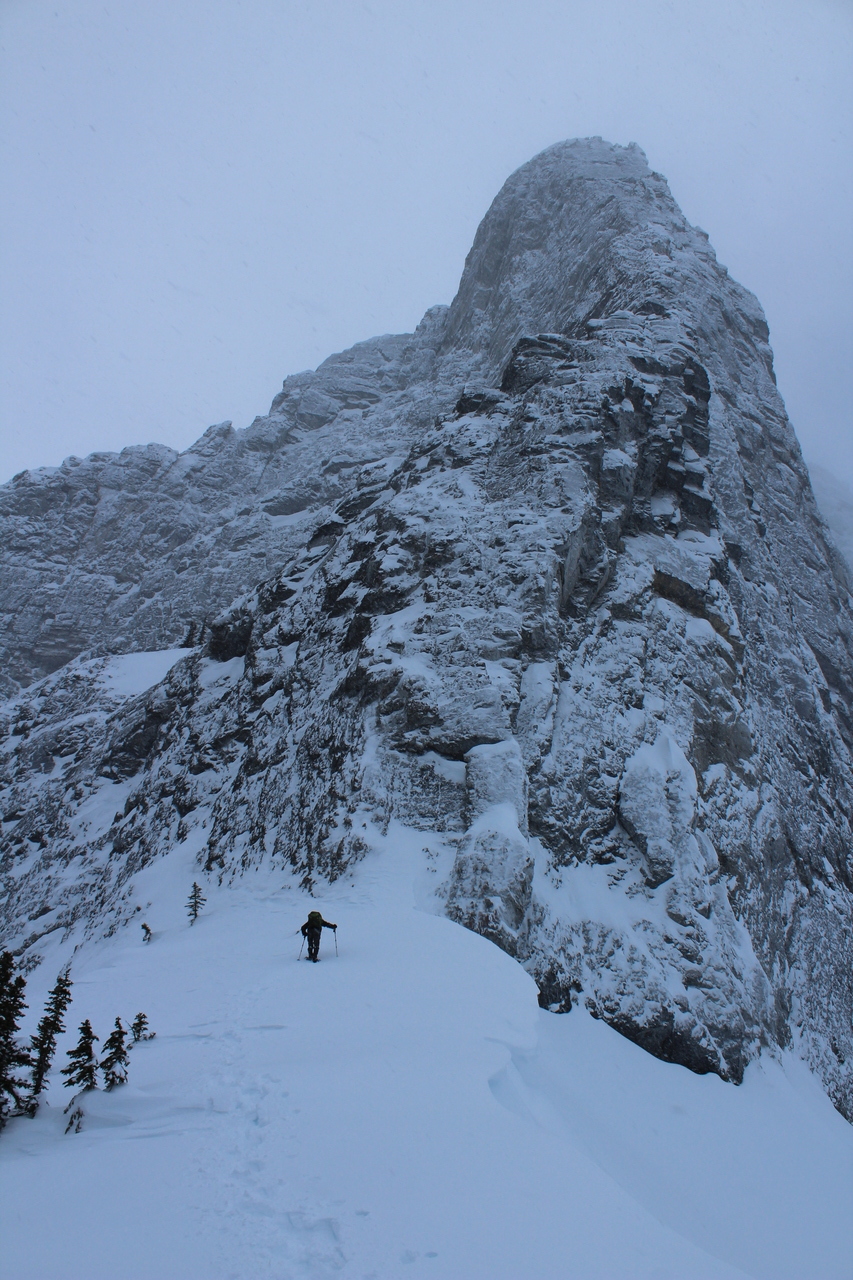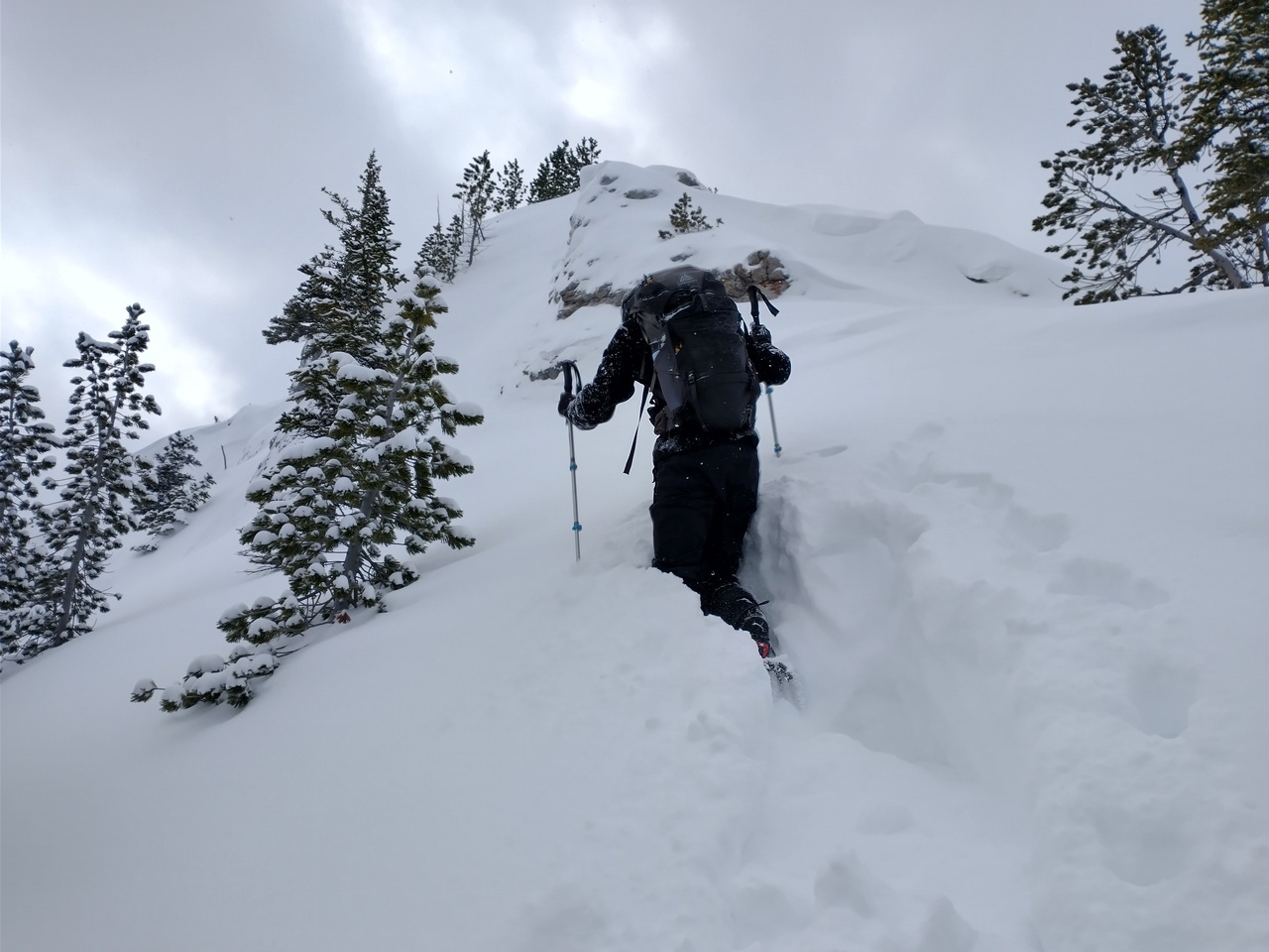 Notes: While just a mere hike in summer, expect some serious trail-breaking and a short, steep crux if ascending directly up the north ridge. An easier bypass can be taken around the east side, which we explored on descent.