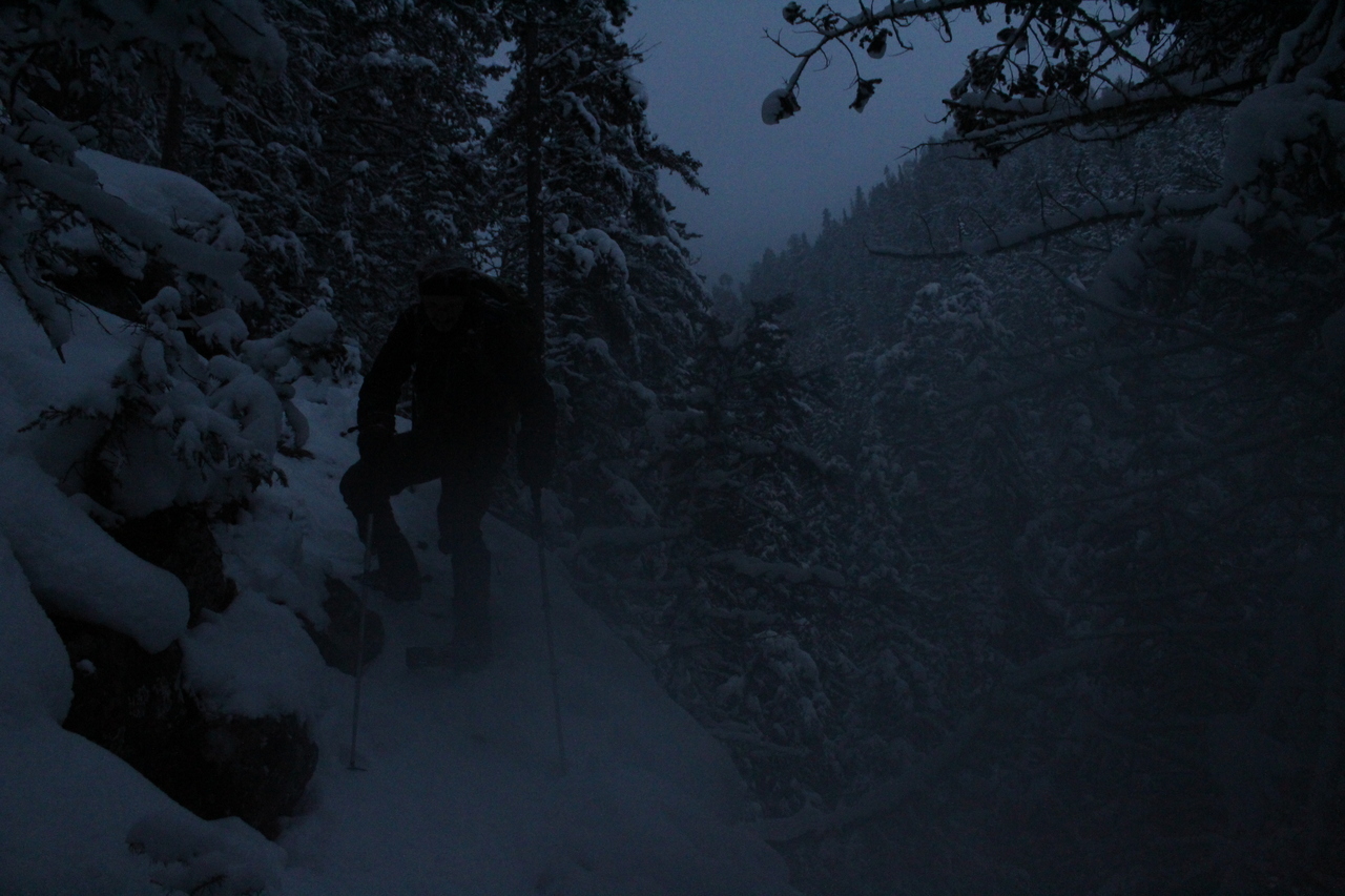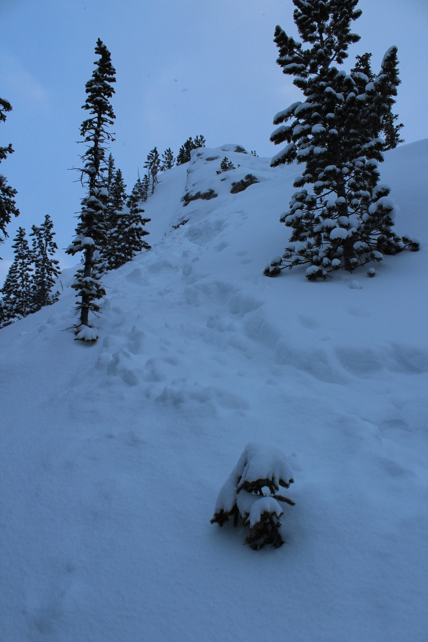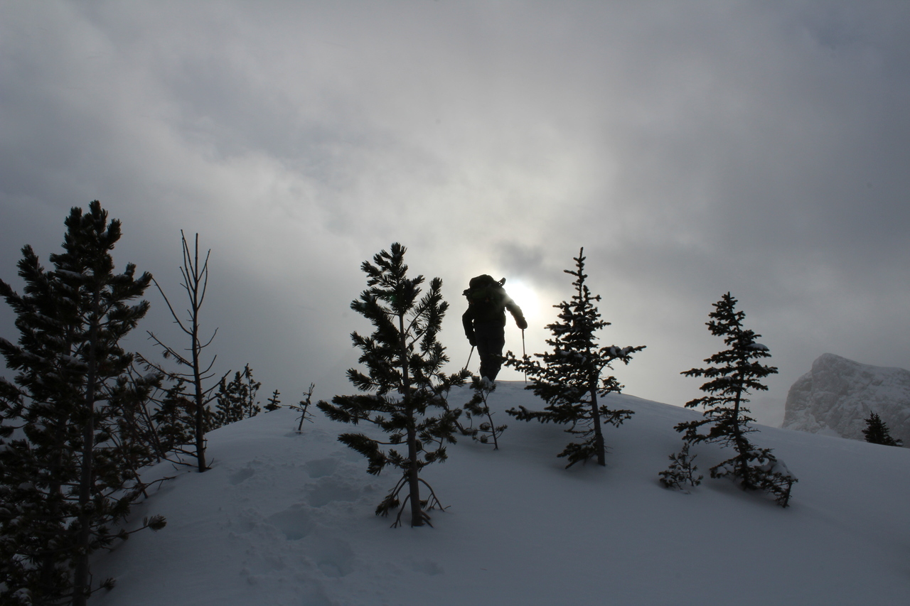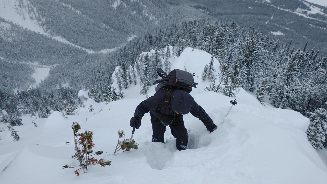 Notes: While just a mere hike in summer, expect some serious trail-breaking and a short, steep crux if ascending directly up the north ridge. An easier bypass can be taken around the east side, which we explored on descent.
