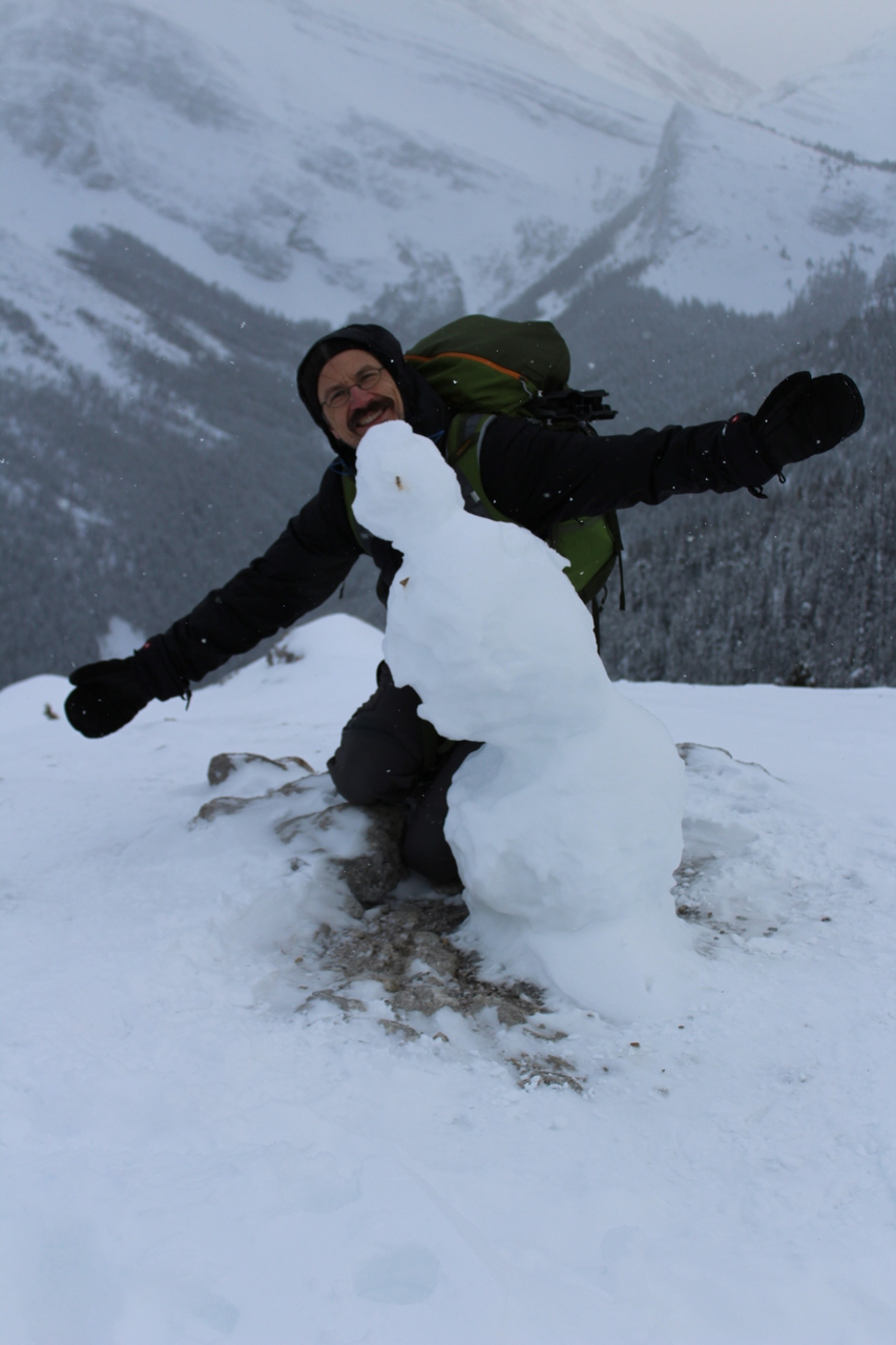 My dad's a snowman! This man must have survived up here for a while now, as the frigid temps of late don't really support snowman building!