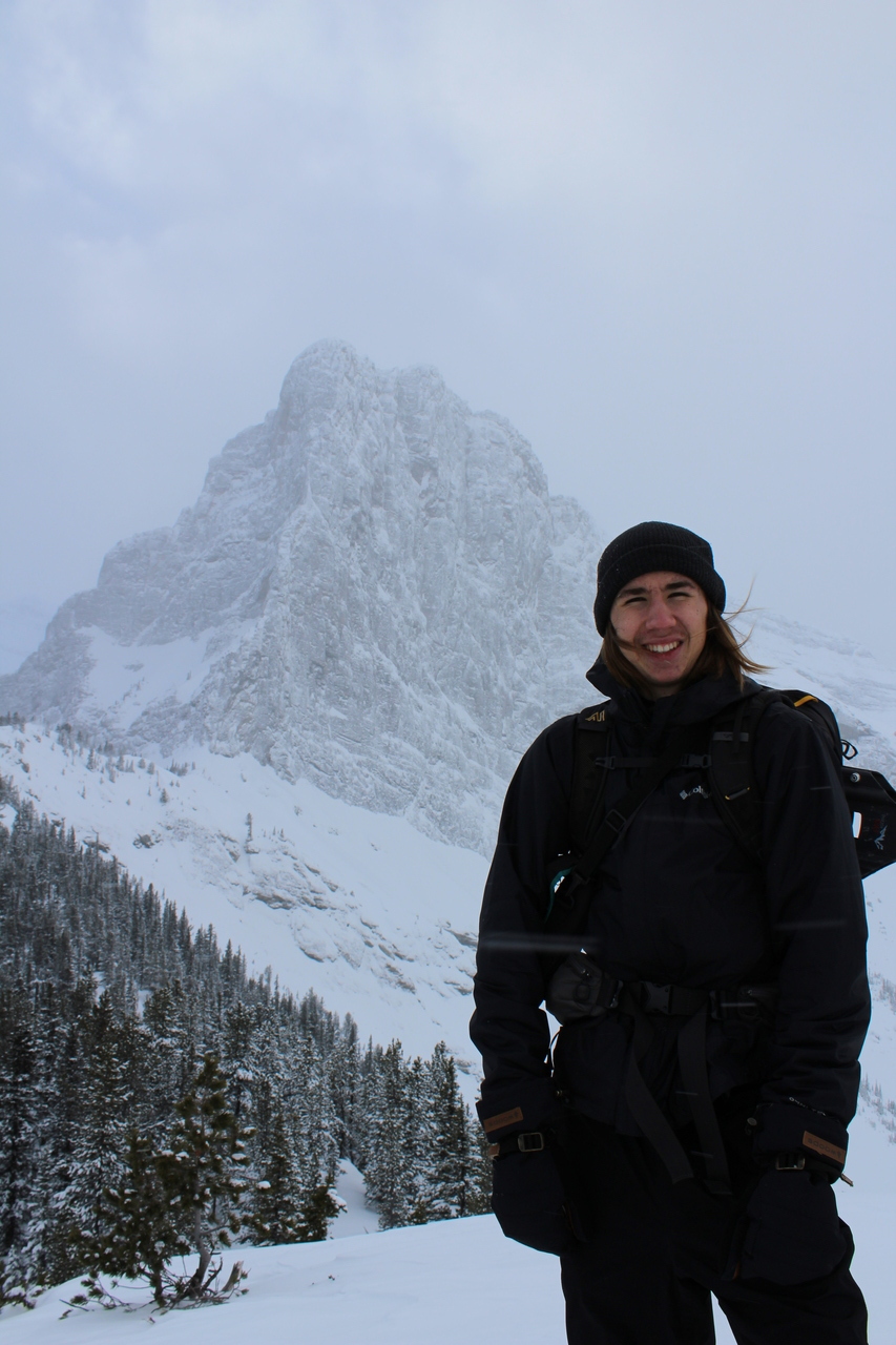 Don't mind me struggling through waist deep snow...The summit is just ahead!...but the slopes guarding it look like they could pose quite the challenge! Photo credit: Dad