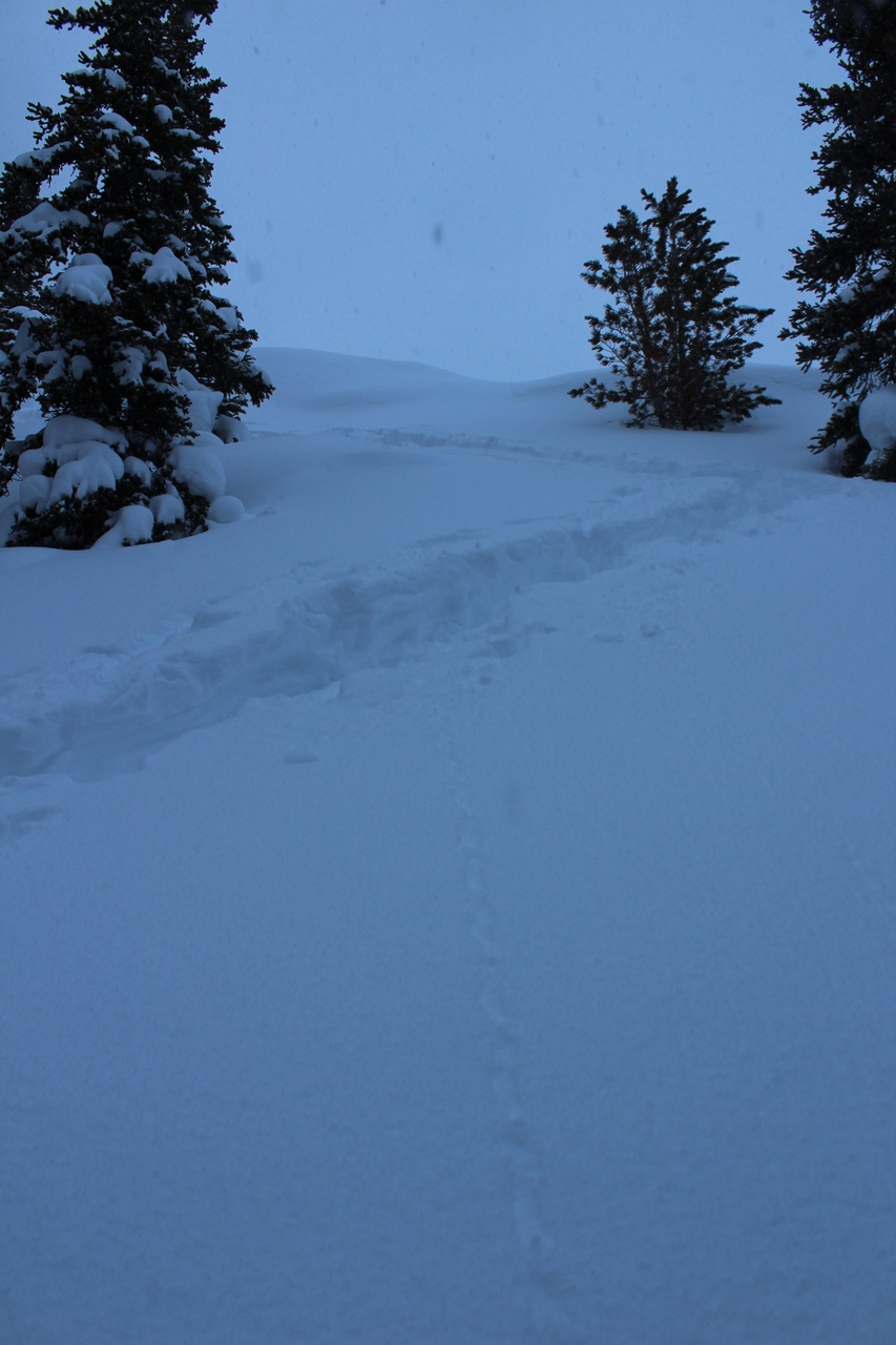 Looking back up our tracks as we make our way back down the ridge. If anyone wants to do this trip soon, there's a nice path now! :)