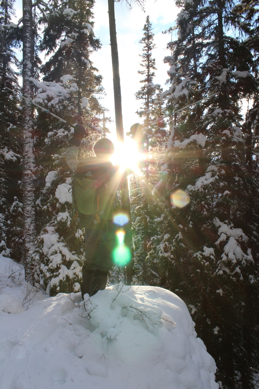 The sun breaks through the trees! The forecast predicted an 80% chance of snow today...so far we've been extremely lucky with this beautiful weather!!