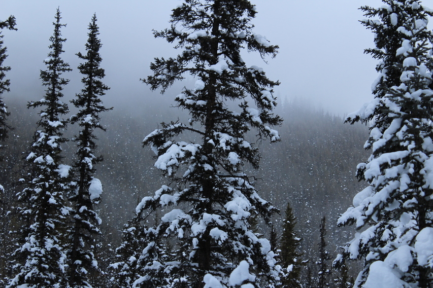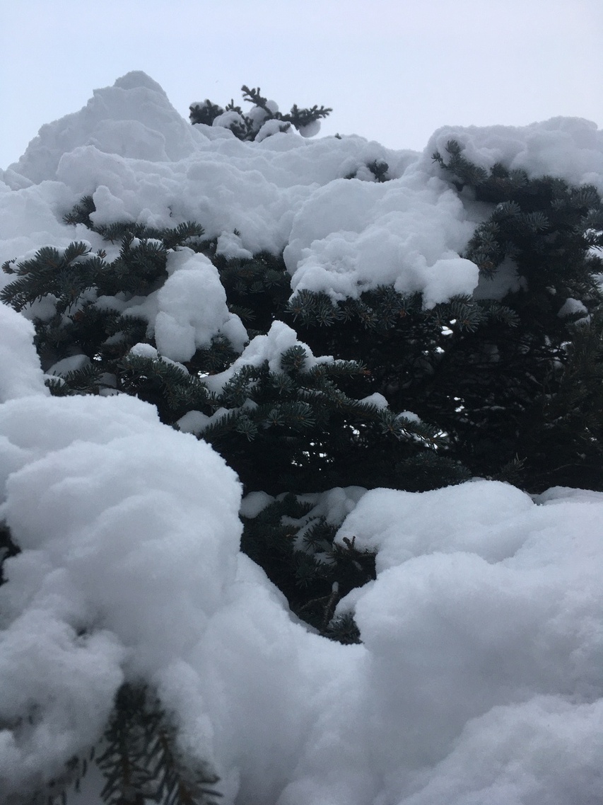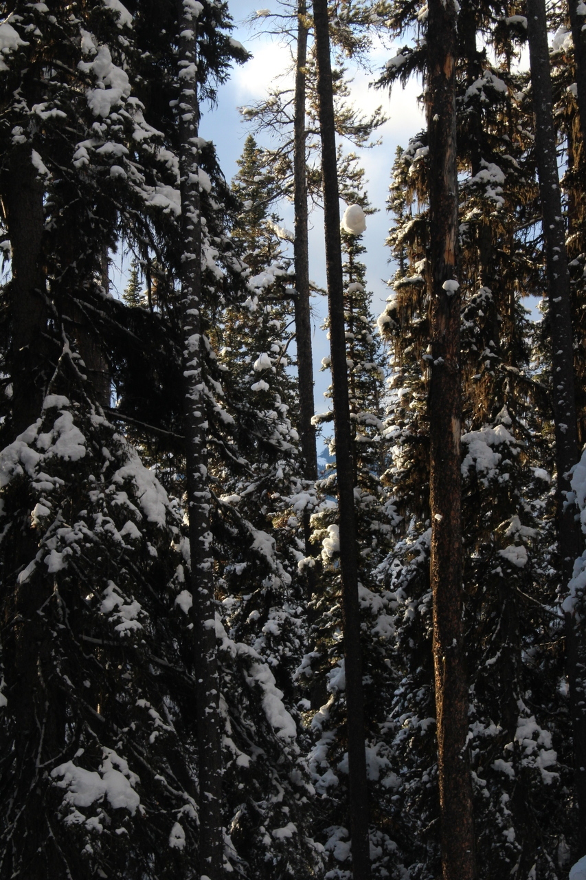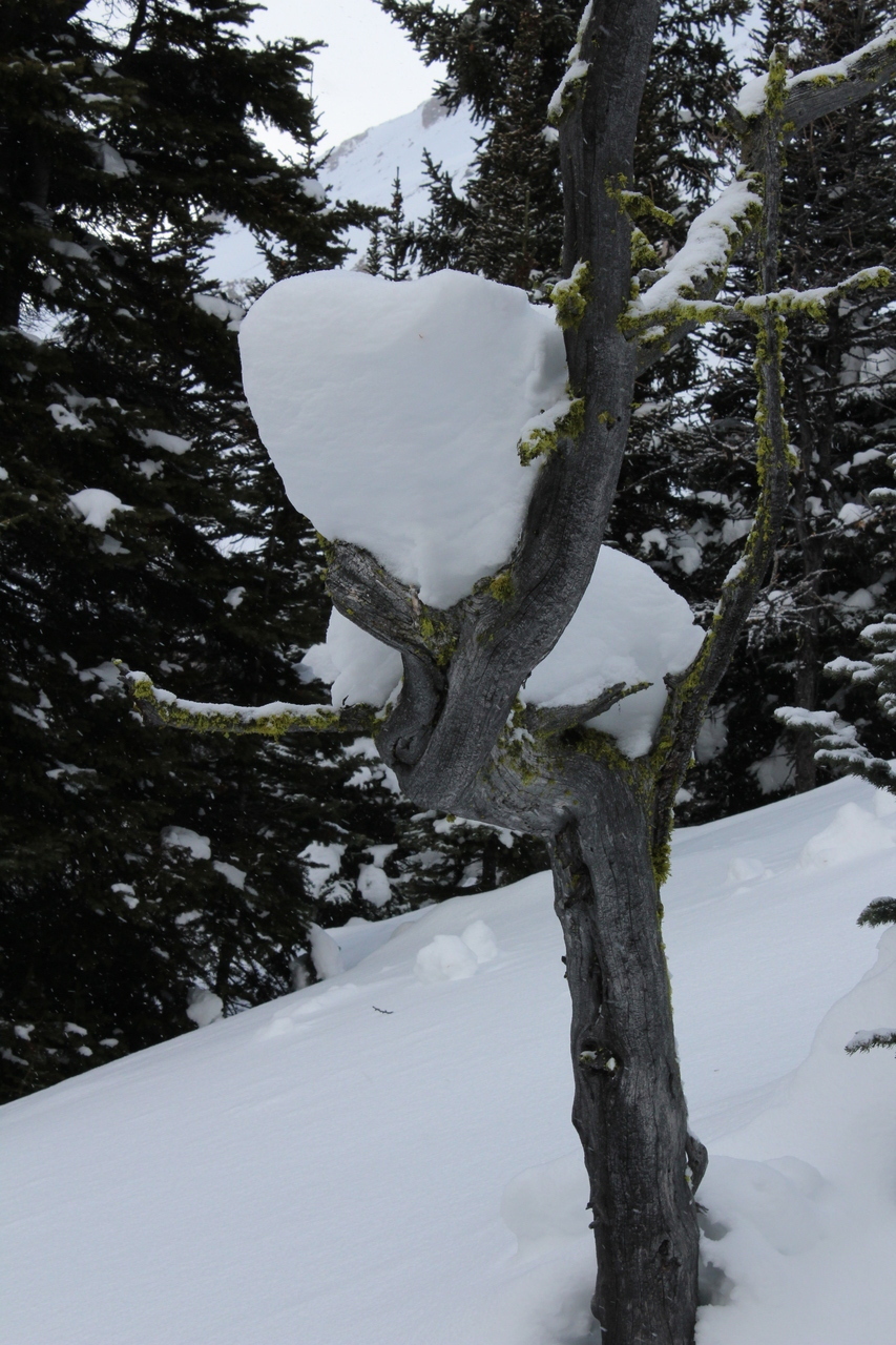 I like the narrow tree in the middle with a big clump of snow balancing on top :)