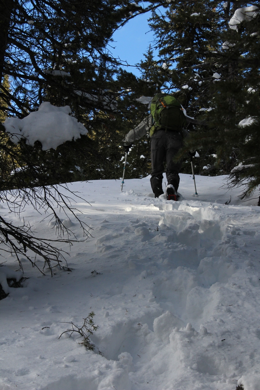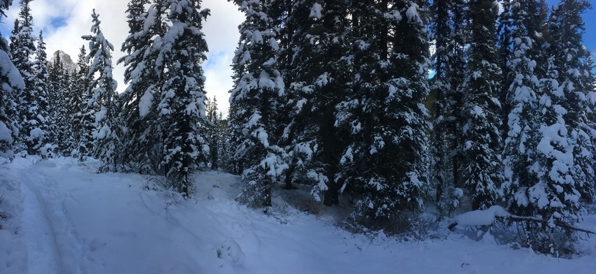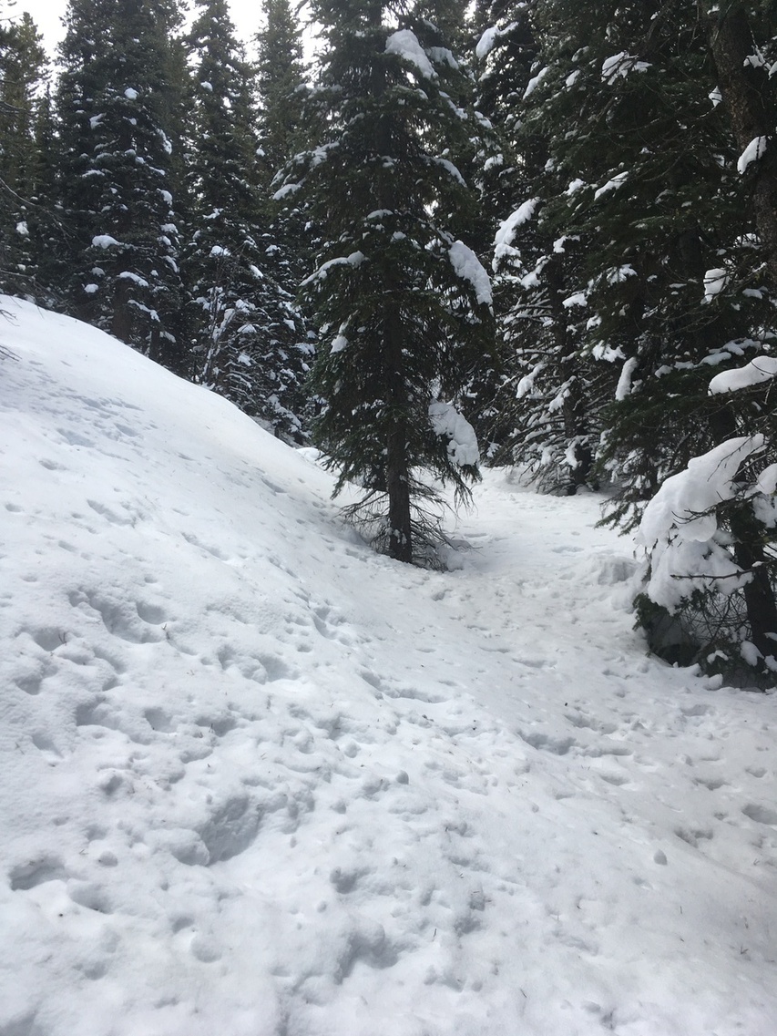 Joining back up with the Rockbound Lake trail...kinda sad that there's a pre-broken trail now...the powder is so much more fun to descend!