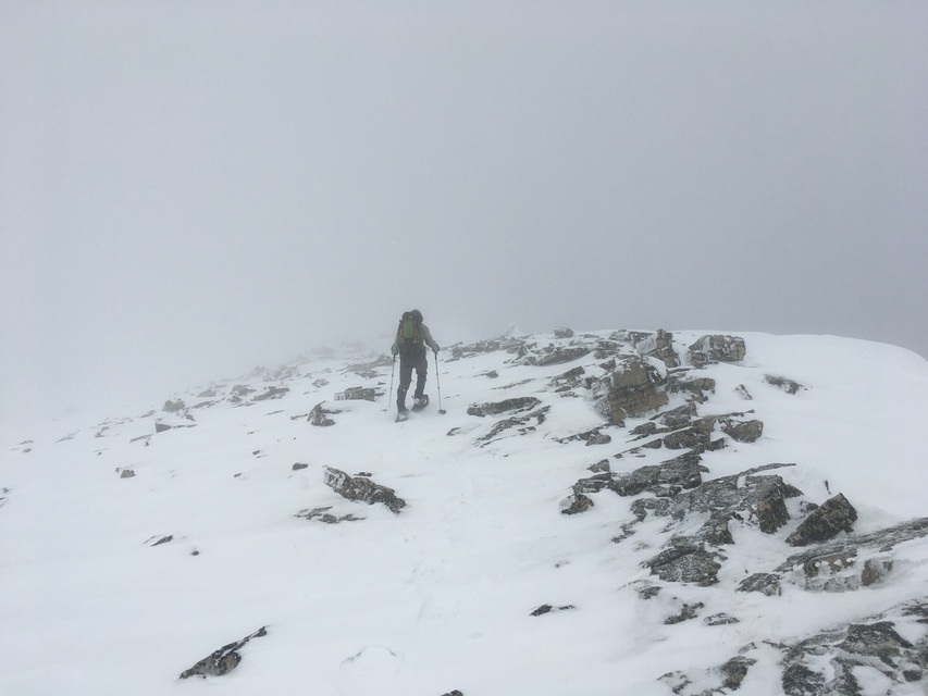 The summit of Noetic Peak was visible for a brief moment, breaking out above the clouds! We waited around for a little while longer to see if it would be fully revealed, but I was eventually able (barely) to tear myself away, and head back down the mountain, leaving the incredible winter scenery behind. My hands thanked me for it!