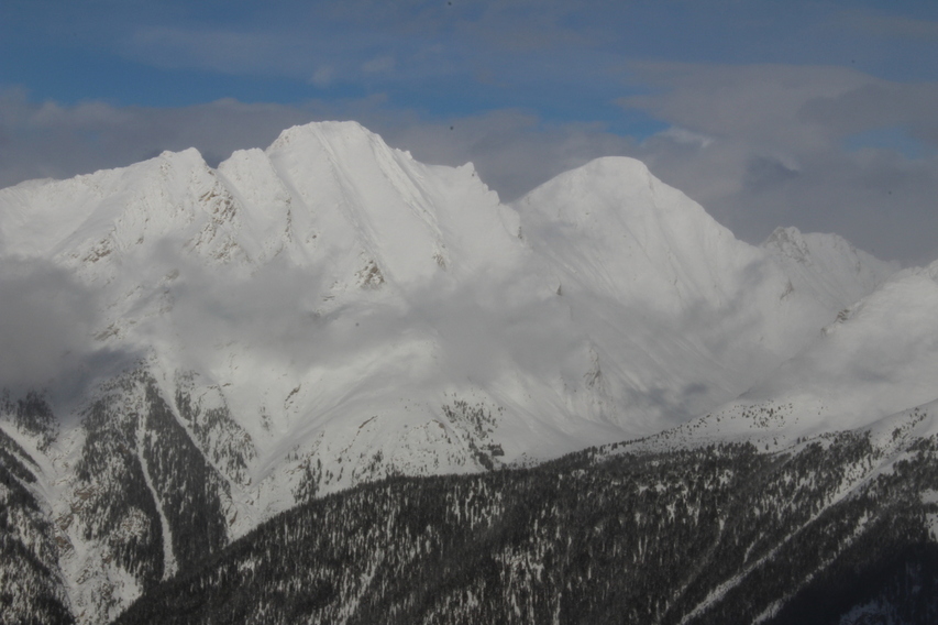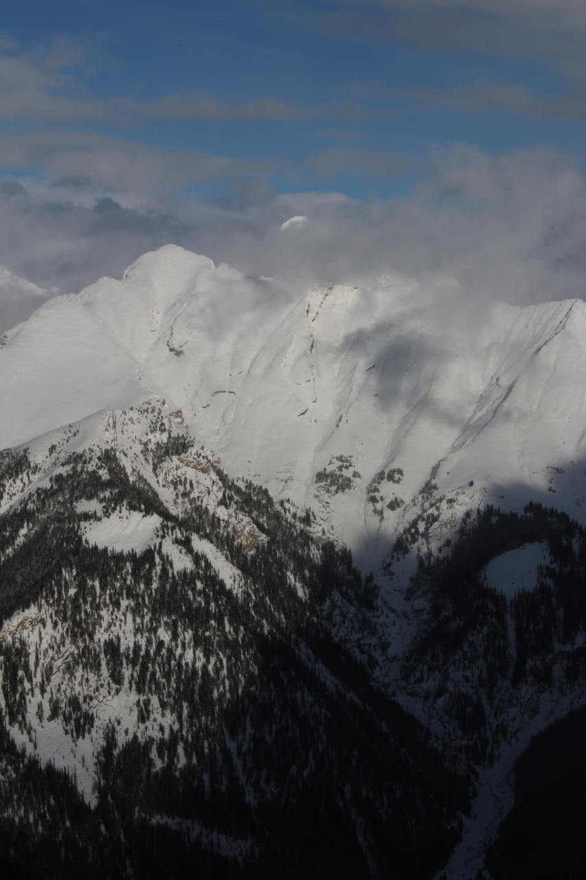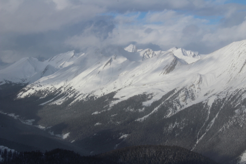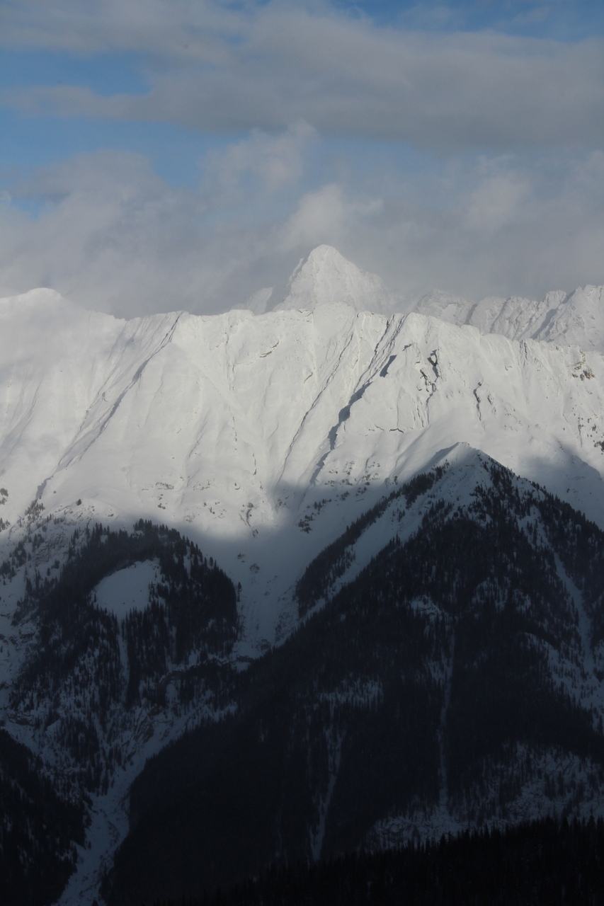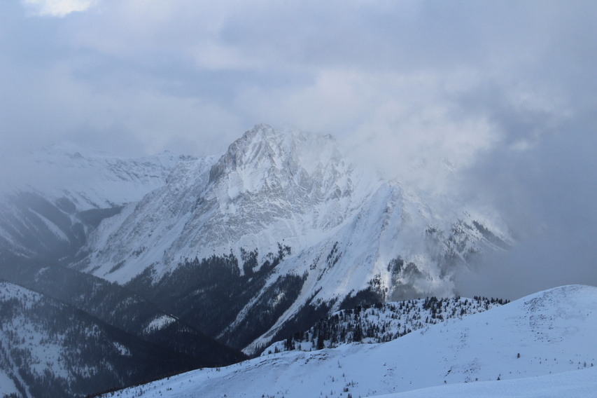 ...but I just couldn't pull myself away from the summit just yet! And wouldn't you know it, the views just kept getting better! I was constantly putting my mittens on to try to warm up, and then immediately taking them off to take a picture, as the clouds shifted, and more views opened up! Are my hands ever gonna thaw out!!? I believe the big peak (reminds me of one of those massive peaks in ski movies from the Alps or Himalayas!), center-left, is Noetic W3!
