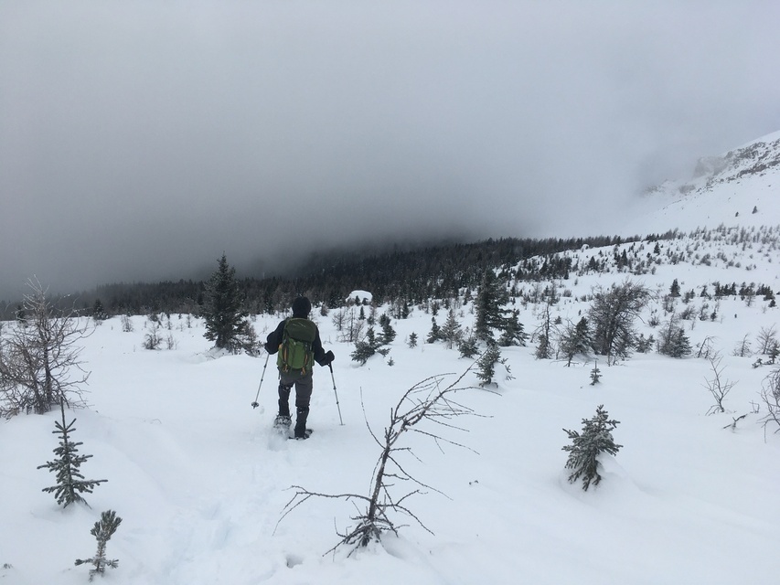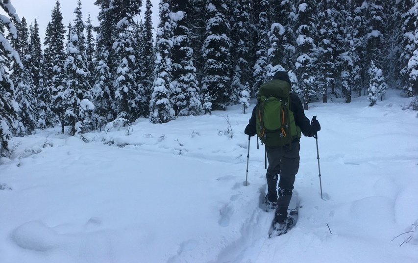 After our first ever go at snowshoeing on Muleshoe Ridge the day prior, I had originally planned to try Hector South Ridge next! Avalanche danger wiped out that plan however (get it? Because avalanches wipe things out...I'm sorry 😂), and we were left with no objective for the day! After spending some time looking through our map, I came across Helena Ridge East Peak! I'd never heard of it before (I did know of Helena Ridge from Kane's Scrambles), but the contour lines and direction the slope was facing, suggested that avalanches shouldn't be a problem! Although we weren't the most excited to trudge up the long, endless, uneventful, boring, monotonous, dull, (okay, now I'm just looking up synonyms for boring...) Rockbound Lake trail (for a third time!), and had no clue what we would find when it came time to leave said trail, we were excited to test out our snowshoes again...and lets just say we are officially in love with this snowshoeing thing!!