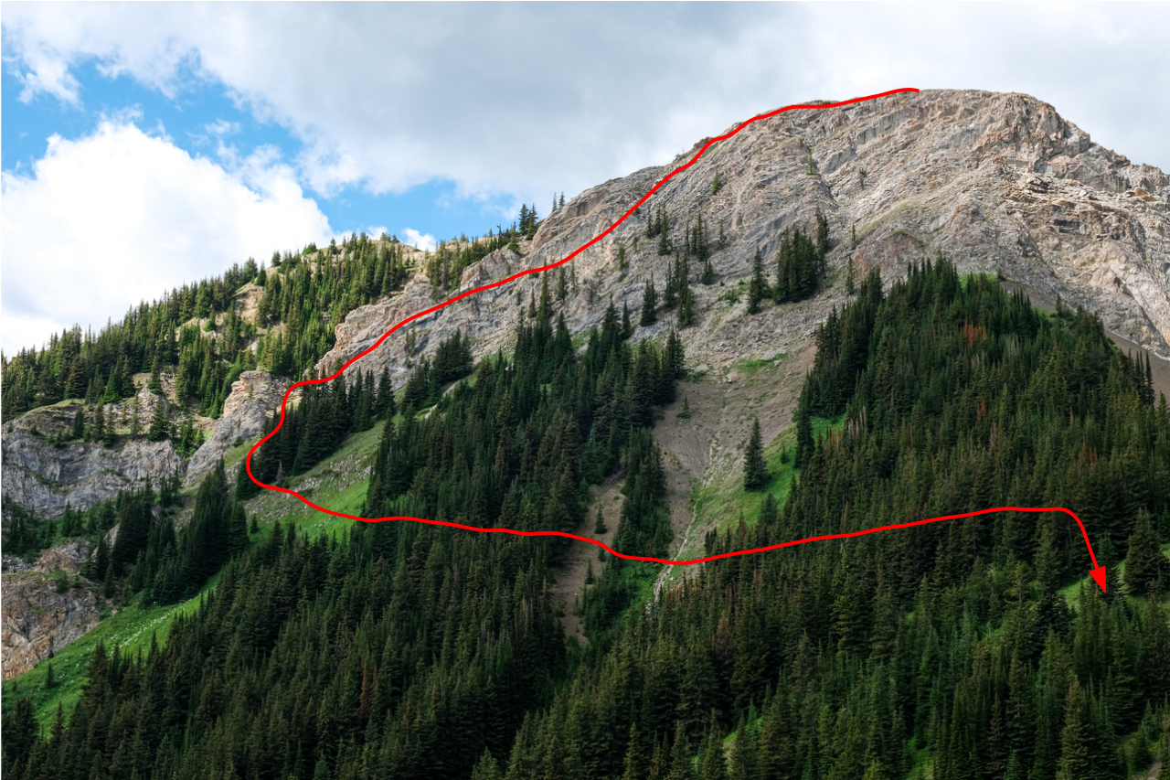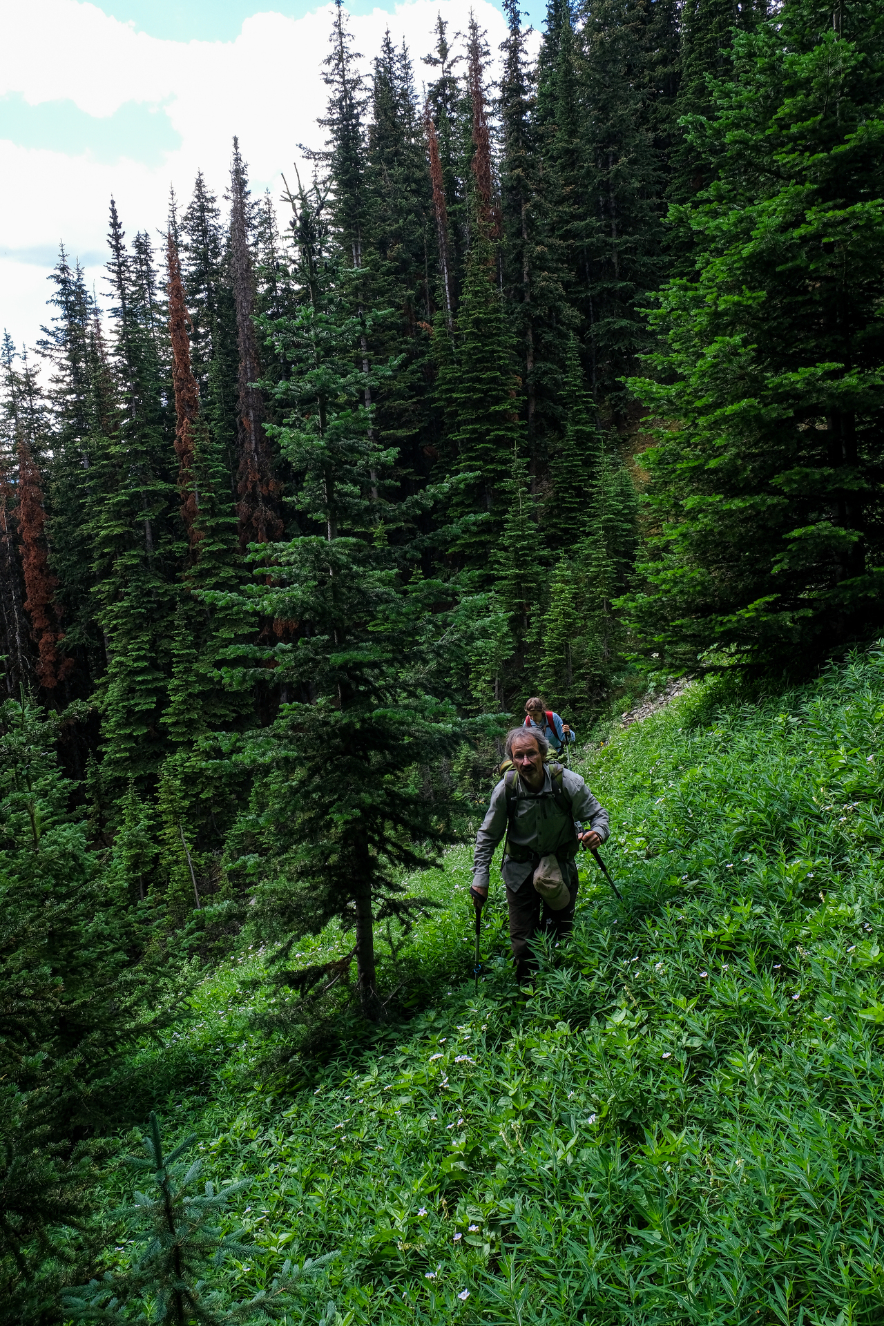 After a beautiful hike up King Creek Ridge to start the day, it was time to find a way down to the grassy saddle between us and Mount Hood, so that we could continue up the opposite side of the valley to bag peak #2! (And no, this is not the 11,000ft volcano in the state of Oregon 😂, but still an impressive mountain nonetheless!)