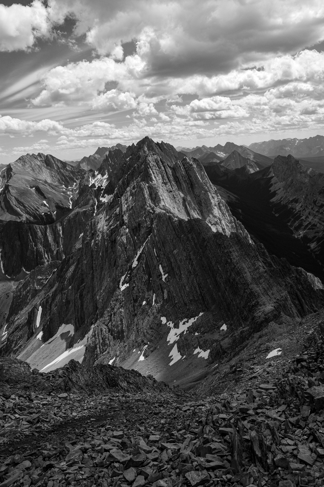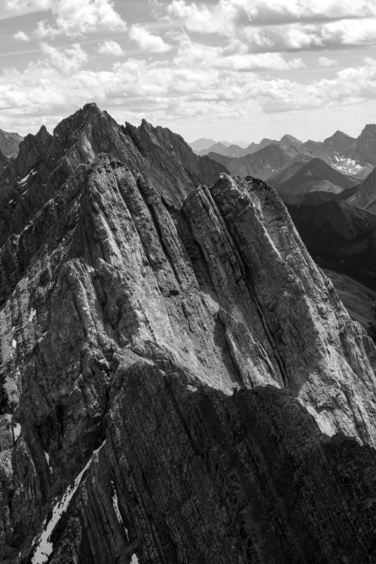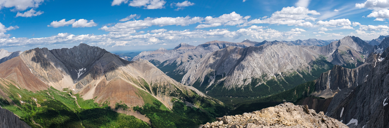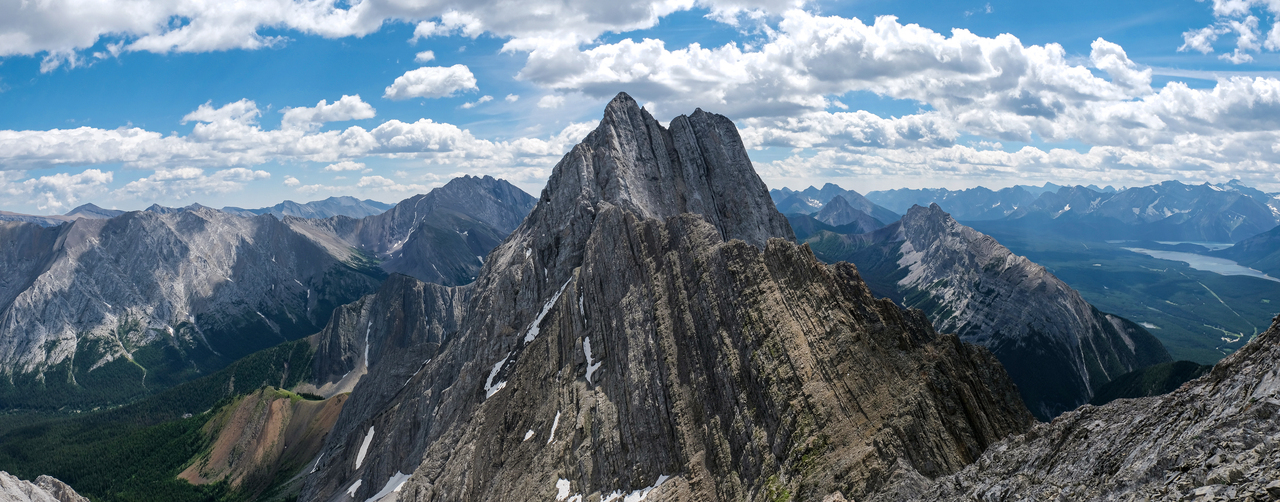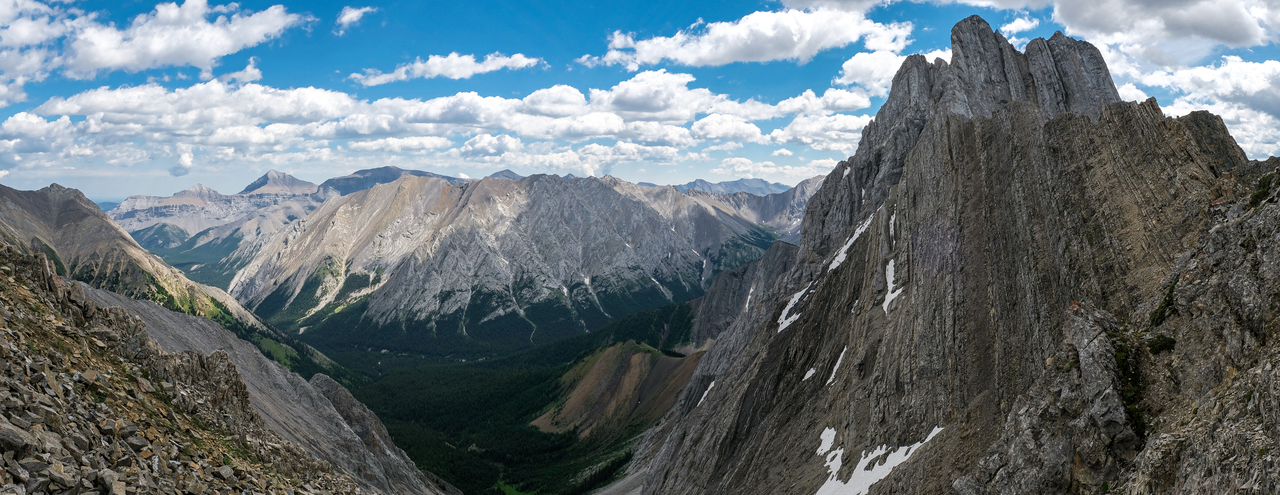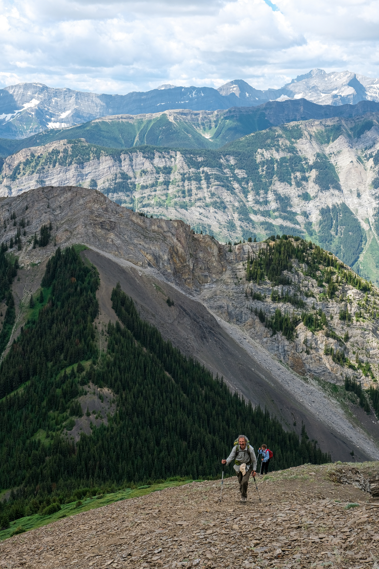 Incredible view, looking south, along the Opal Range! Tombstone, Rae (distant), Brock and Blane (stacked up), Pocaterra (distant), Wintour, and the unmistakable Mount Joffre towering over the Kananaskis Lakes (L to R).