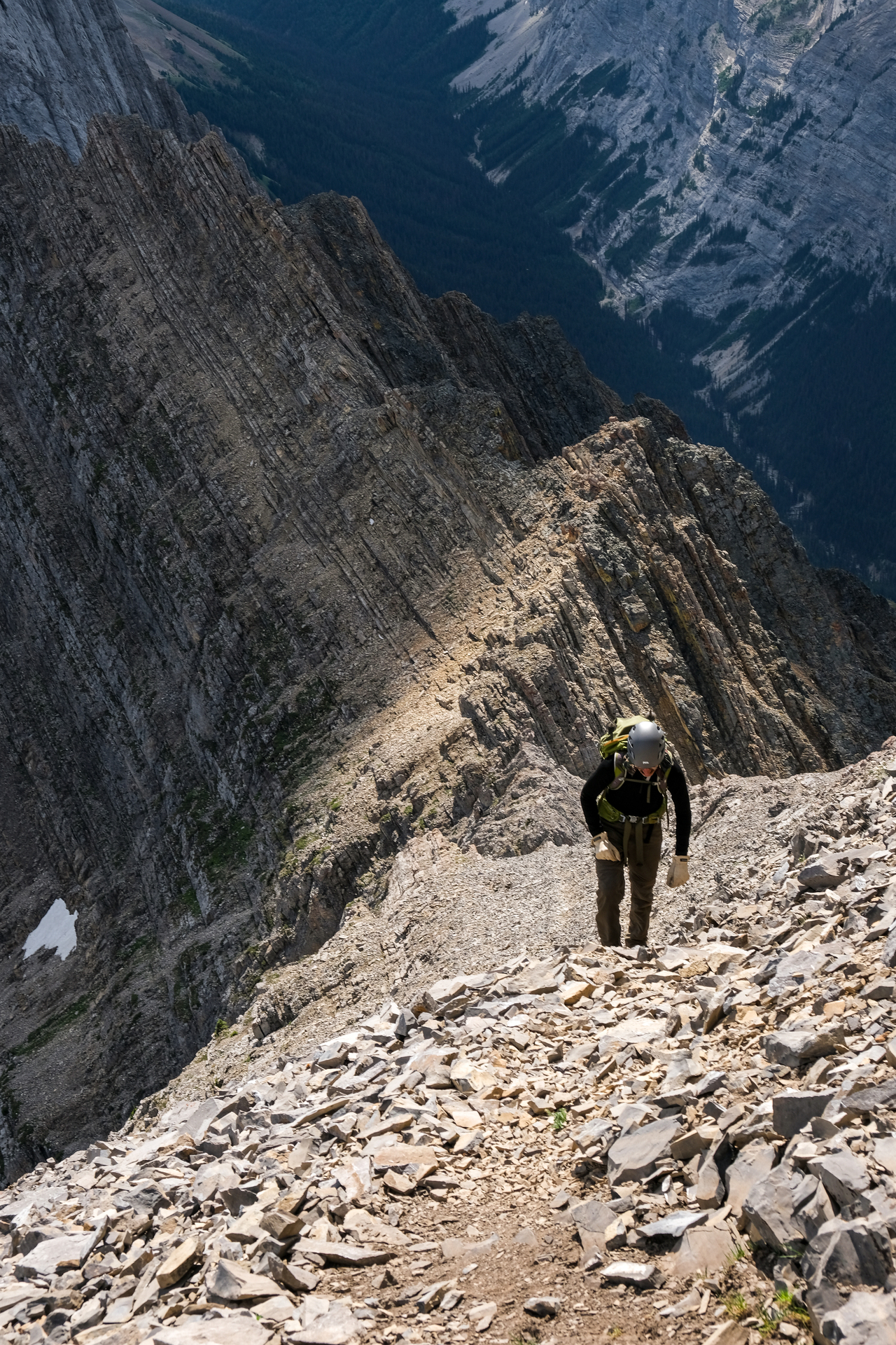 Starting down from KCR's "summit block", to look for a route down to the saddle.
