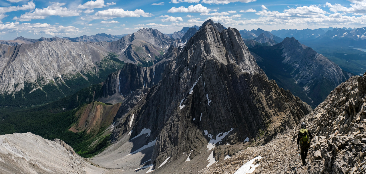Looking towards Kananaskis Lakes, with two 11,000ers standing out from all surrounding peaks. (Joffre - left, King George - right)