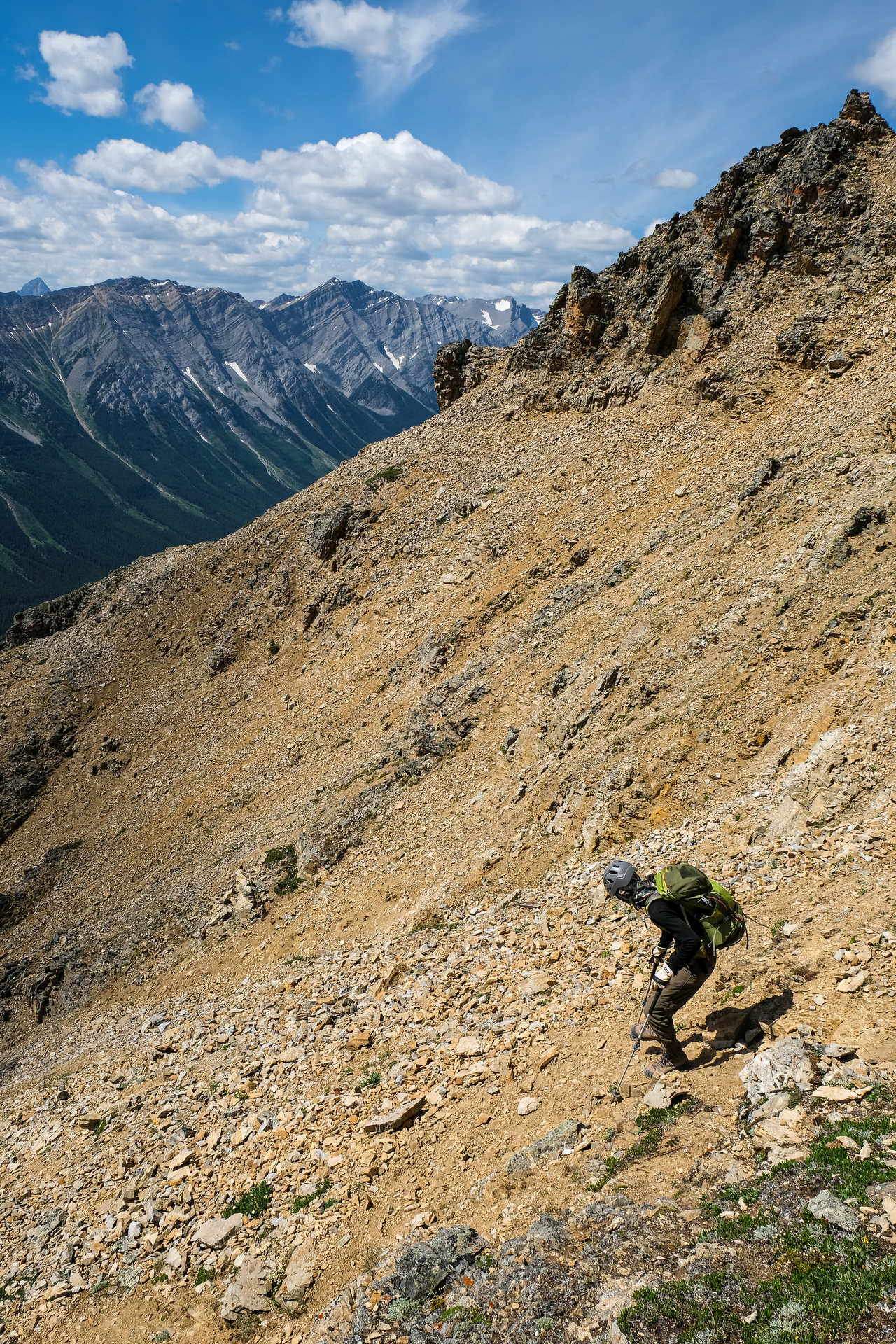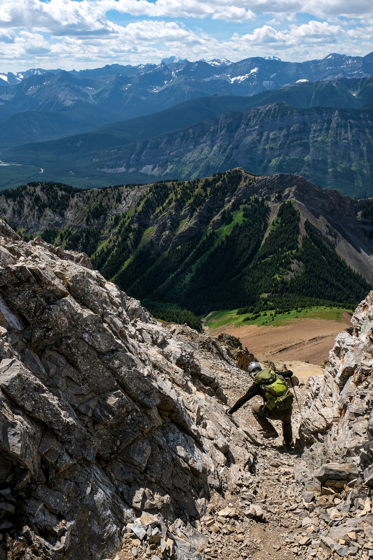 While Kane makes this route sound very undesirable, I actually enjoyed the variety, and would highly recommend doing Mount Hood as a loop! The steep canyon walls are quite the sight, and the effects of the 2013 floods are wearing off, with faint trails forming once again. While Mount Hood turned out to be a much easier scramble than I anticipated, the views were even more stunning than I imagined, and Hood is easily one if my favourite scrambles in Kananaskis that I've completed so far!