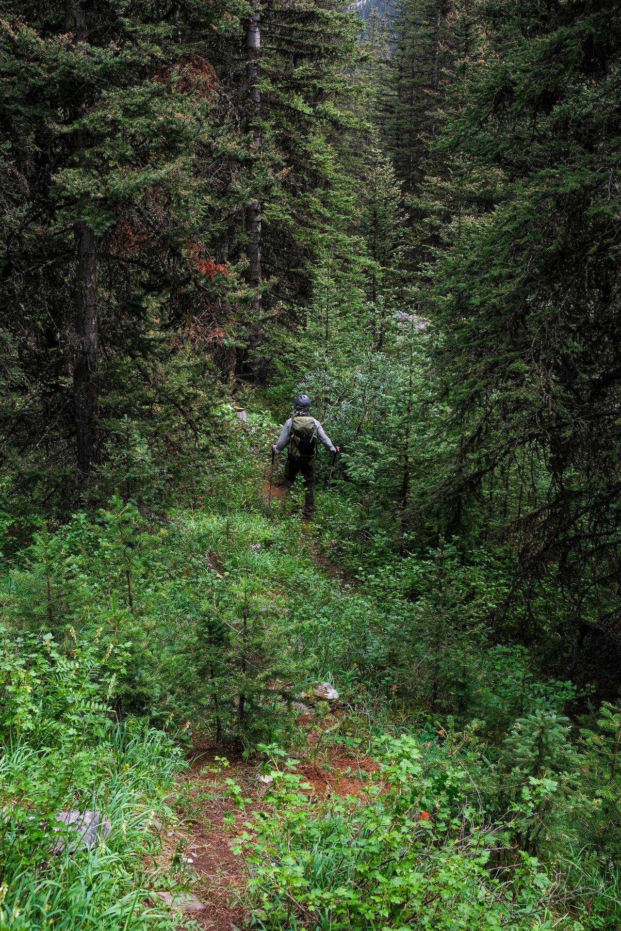While it's impossible to tell, a faint trail actually leads through the overgrown base of the valley.