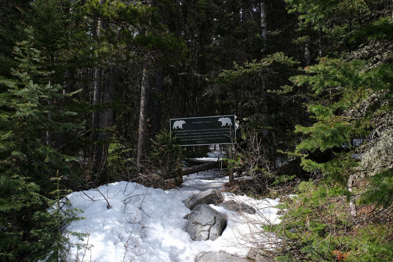 The decommissioned trail sign where we turned off to the right. Hopefully the bears are still sleeping!
