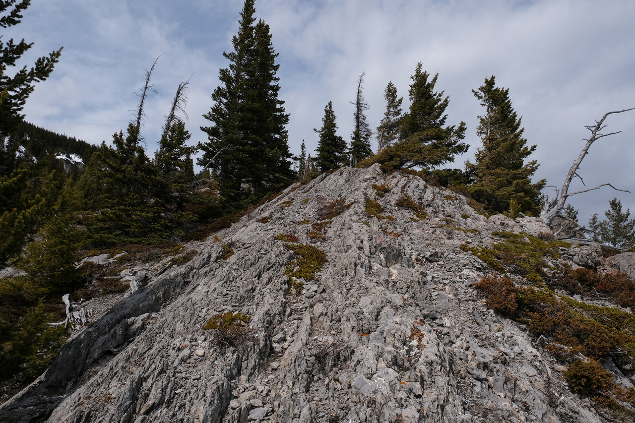 Notes: Some easy scrambling can be found if sticking right to the ridge, while a trail paves the way (if not covered in snow) to climber's left of the rocky crest.