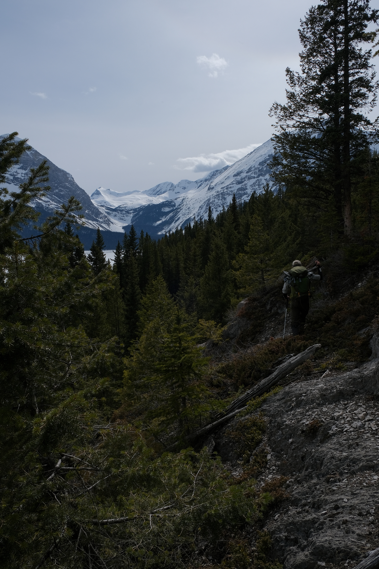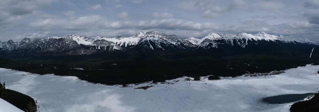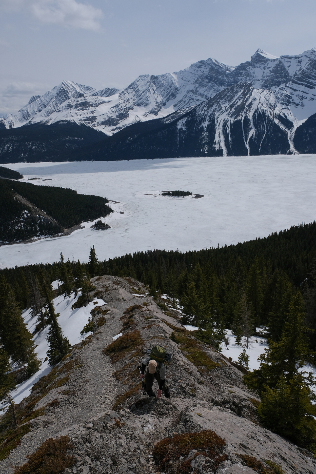 Lower Kananaskis Lake's 8+ km length lies directly below a steep drop, off the east side of the ridge.