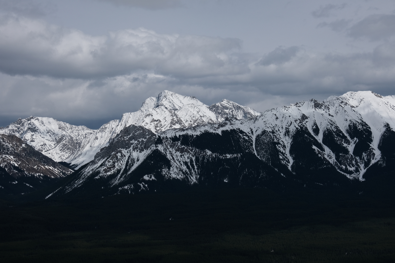 Mount Roberta, and the long connecting ridge to Pocaterra and Tyrwhitt, sit below the distant Mount Rae.