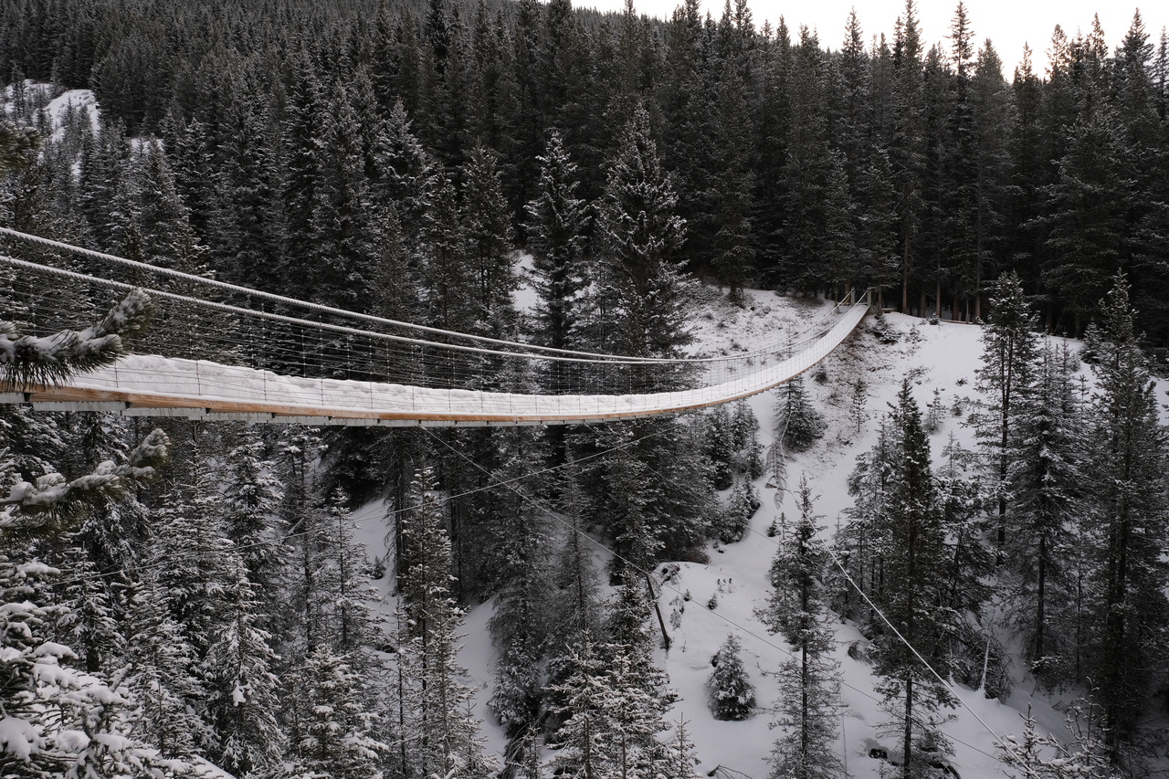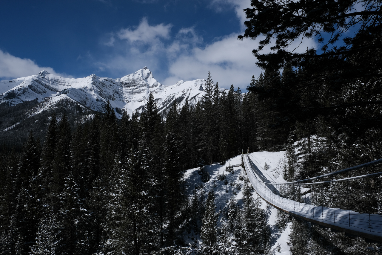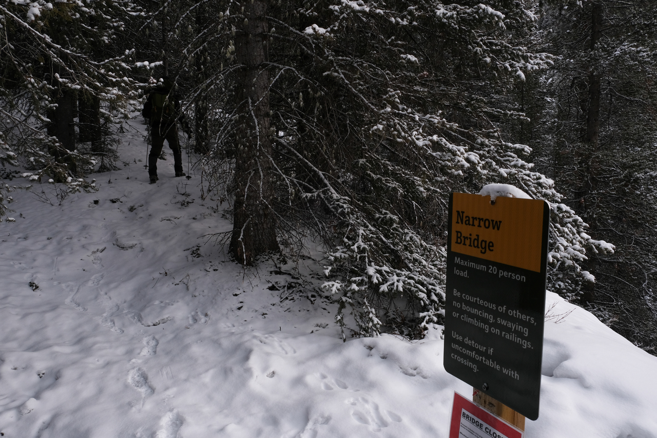 The trail makes a few short switchbacks before arriving at this neat suspension bridge! Unfortunately it's closed in winter :(.