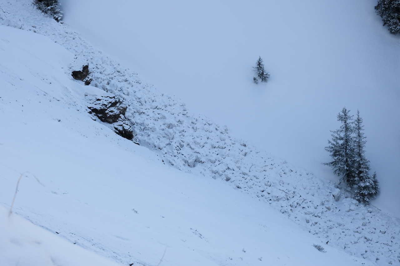 Continuing down the trail. If looking for the safest route, this is it, as there are basically no difficulties to be found...Unless you're the first ones, in which case the trail-breaking will be absolutely brutal!