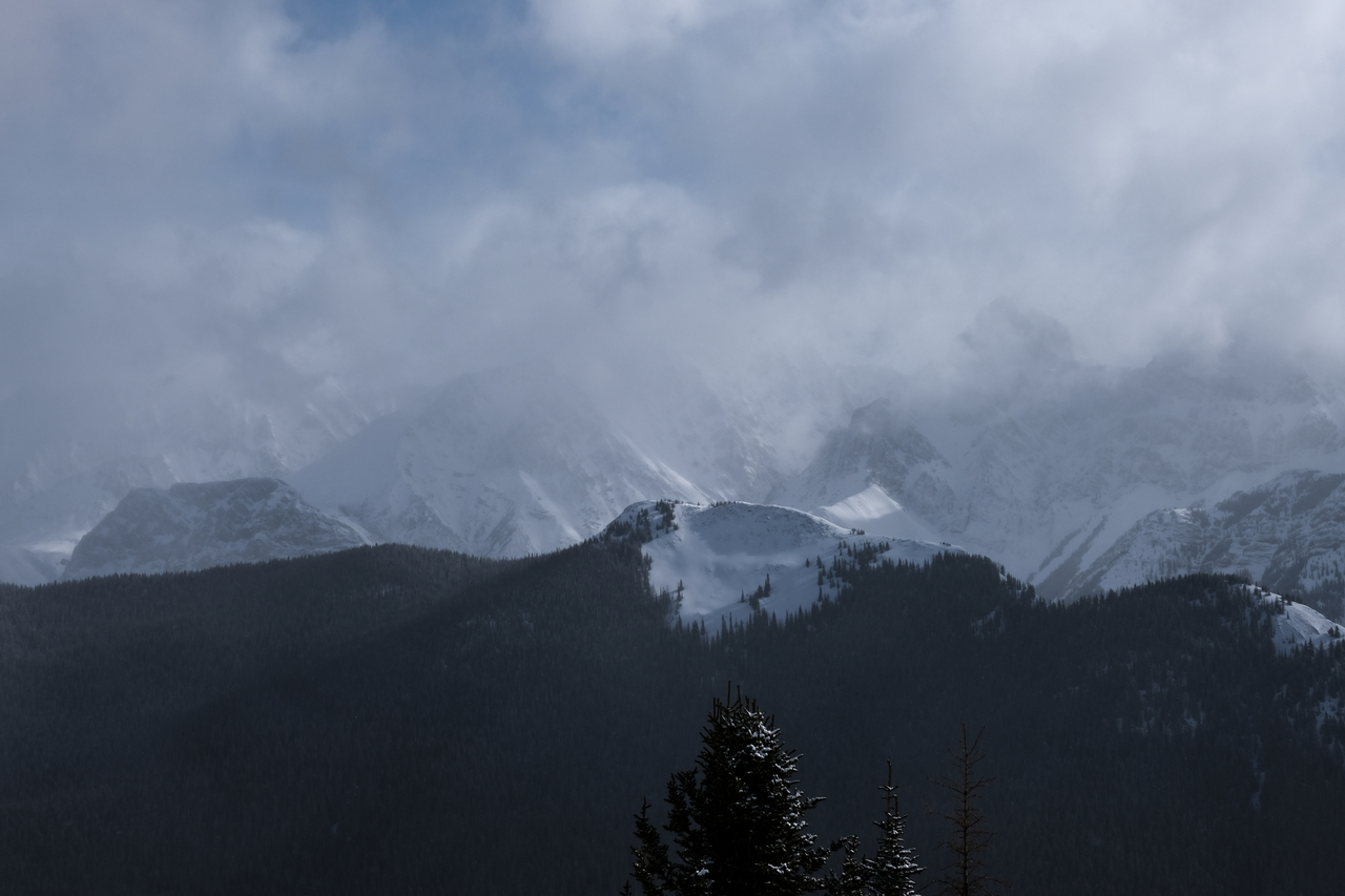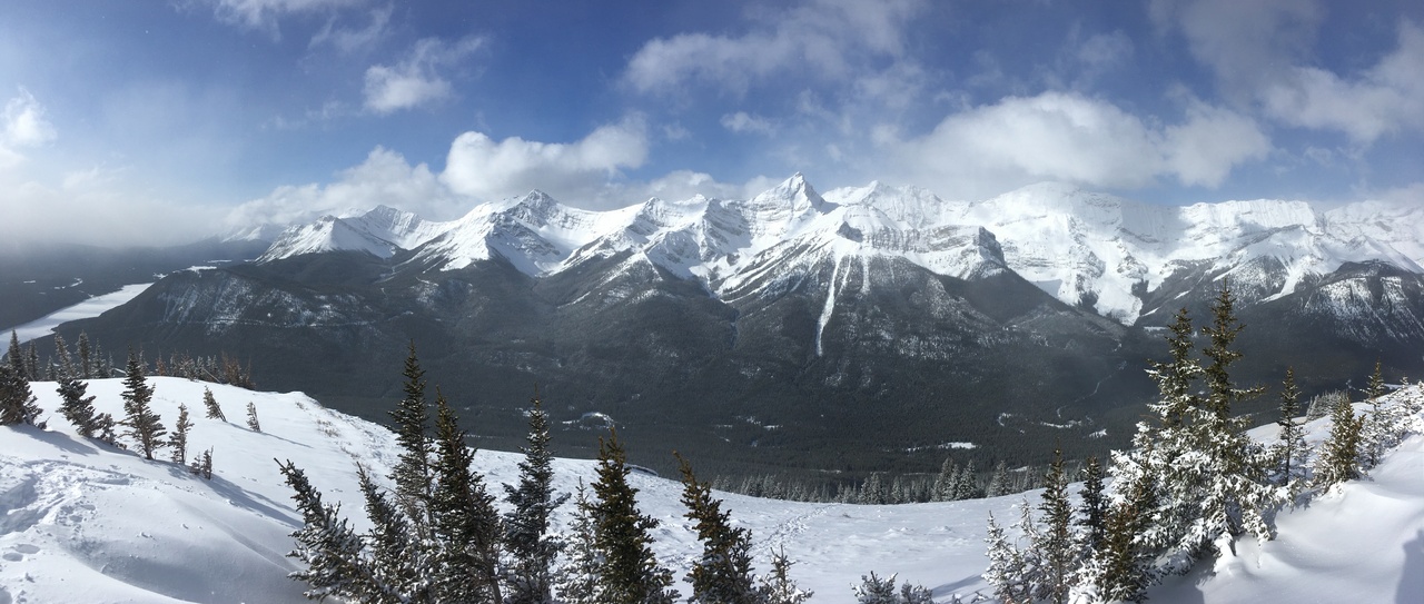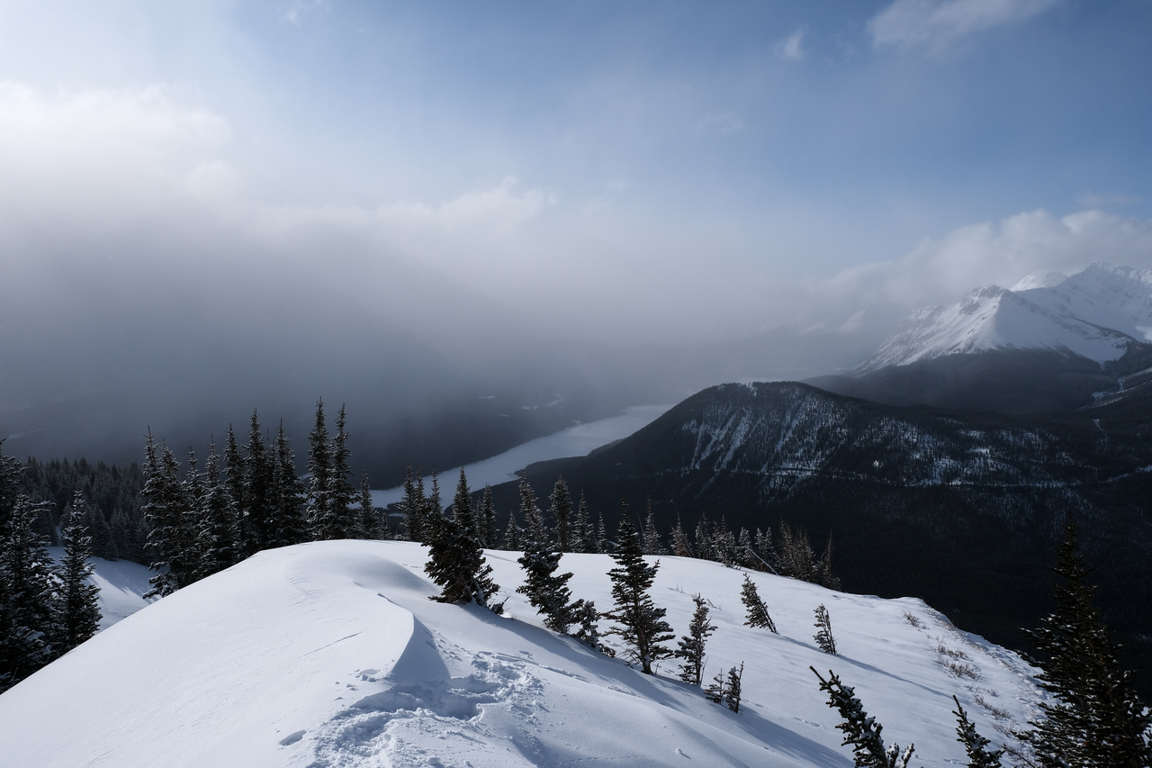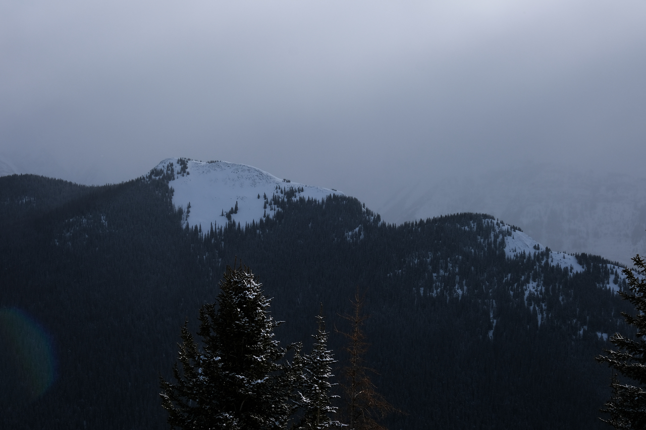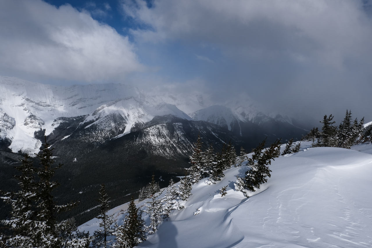 Still super cloudy to the west. The obvious cone of sparse trees in the center is known as Black Prince Glades, which we had an absolute blast skiing last week.