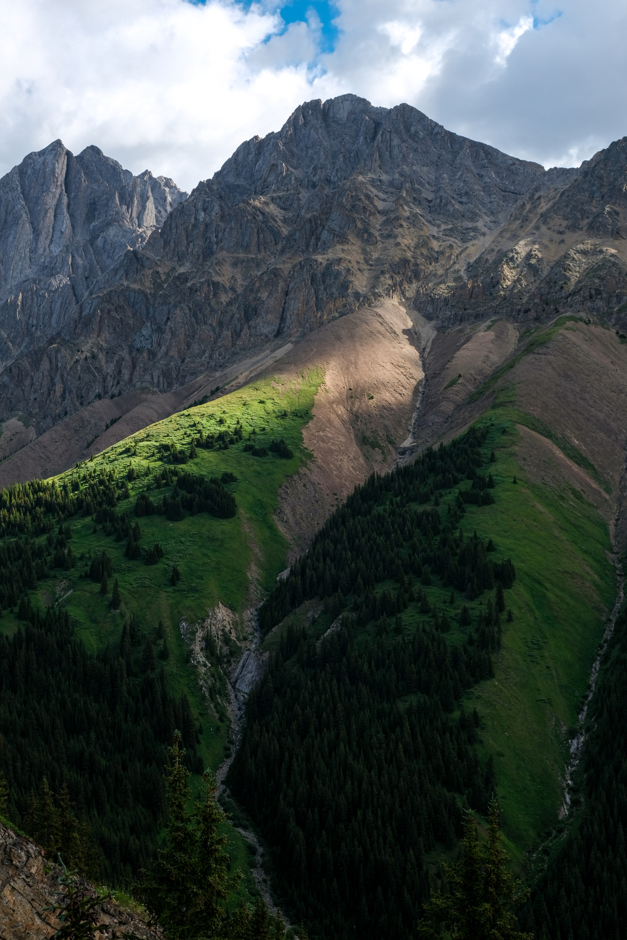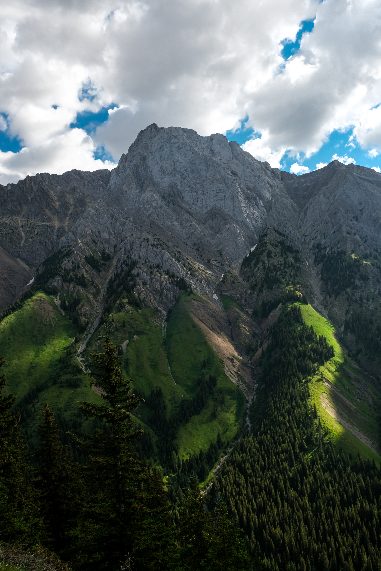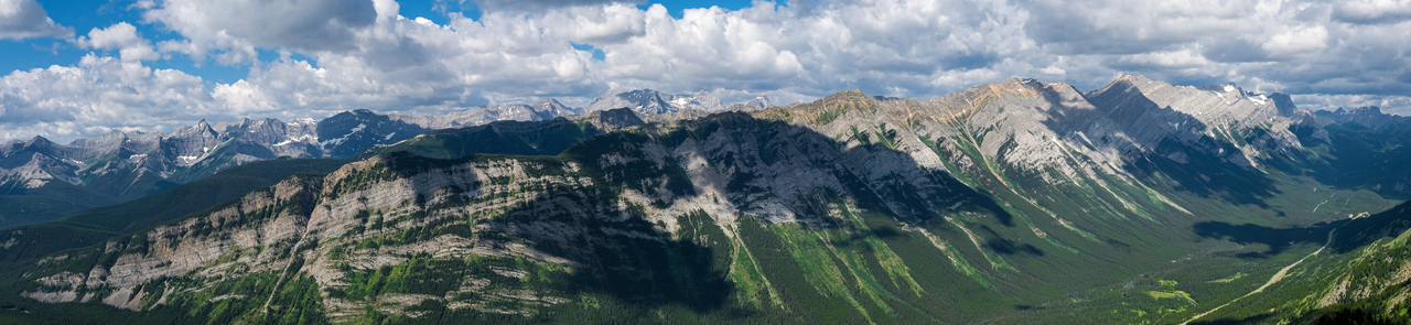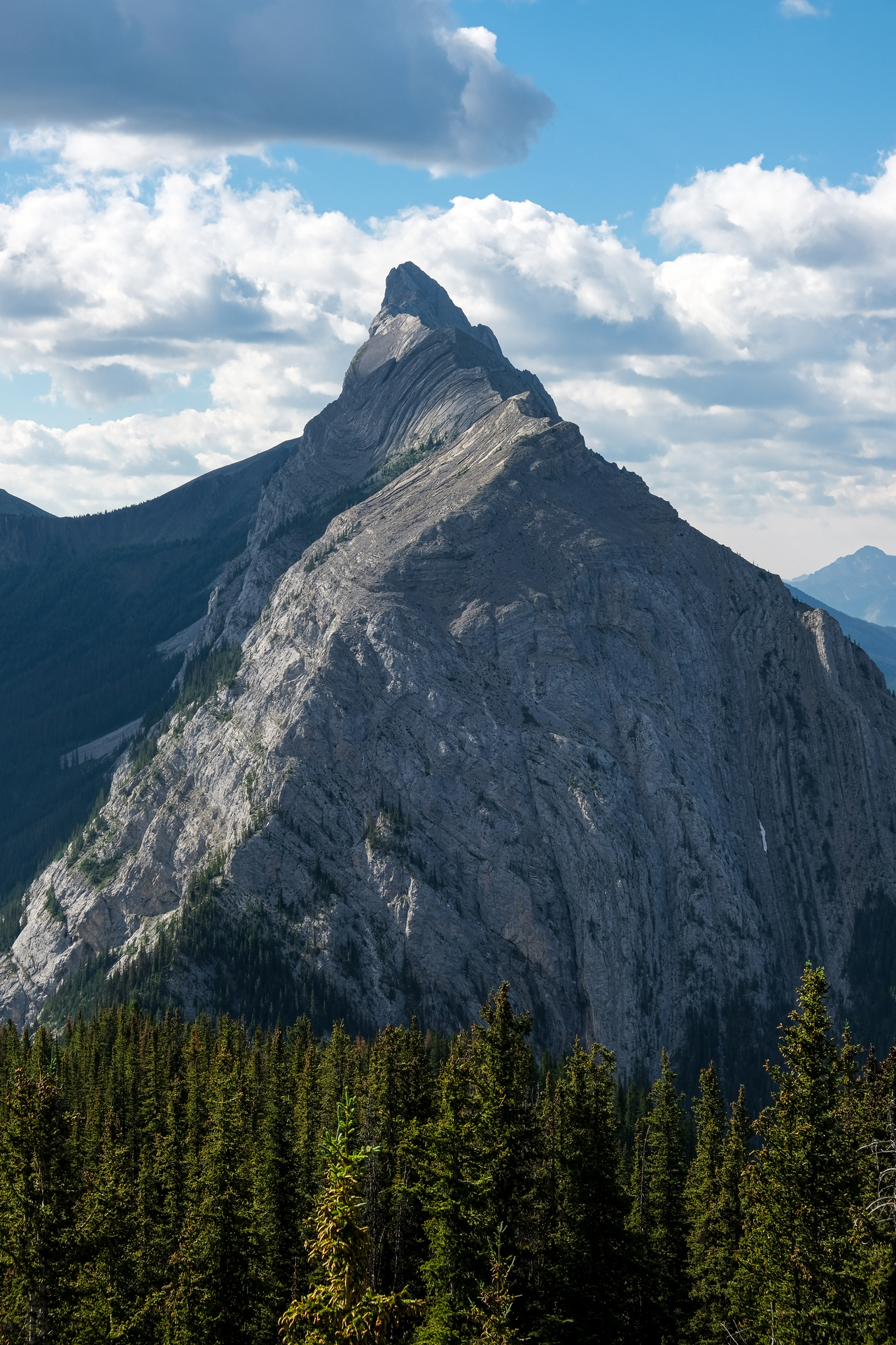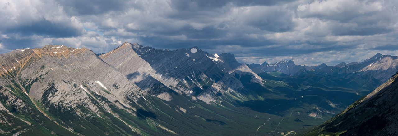 After immediately crossing over King Creek, the trail leaves the highway and quickly gains elevation up to KCR's southern end. There were lots of crisscrossing and interweaving trails, all of which should eventually lead to the same place. Thanks to the steepness of the trail, it wasn't long before we were already enjoying beautiful morning views across to Mount Lawson to the north and the Kananaskis Lakes to the south.