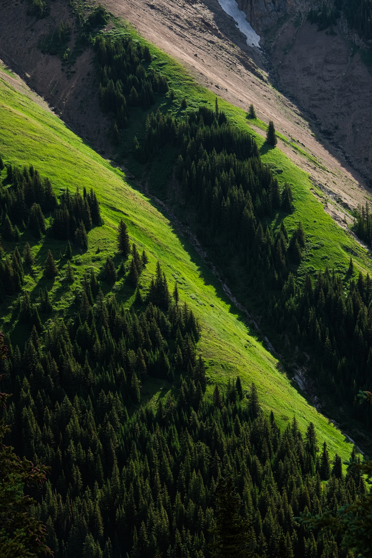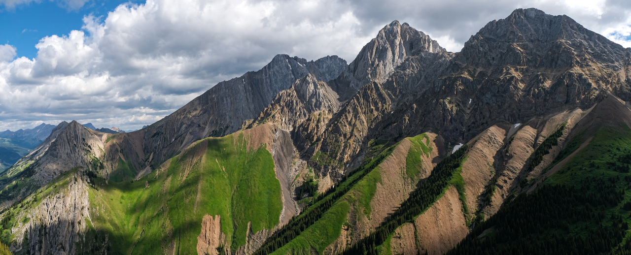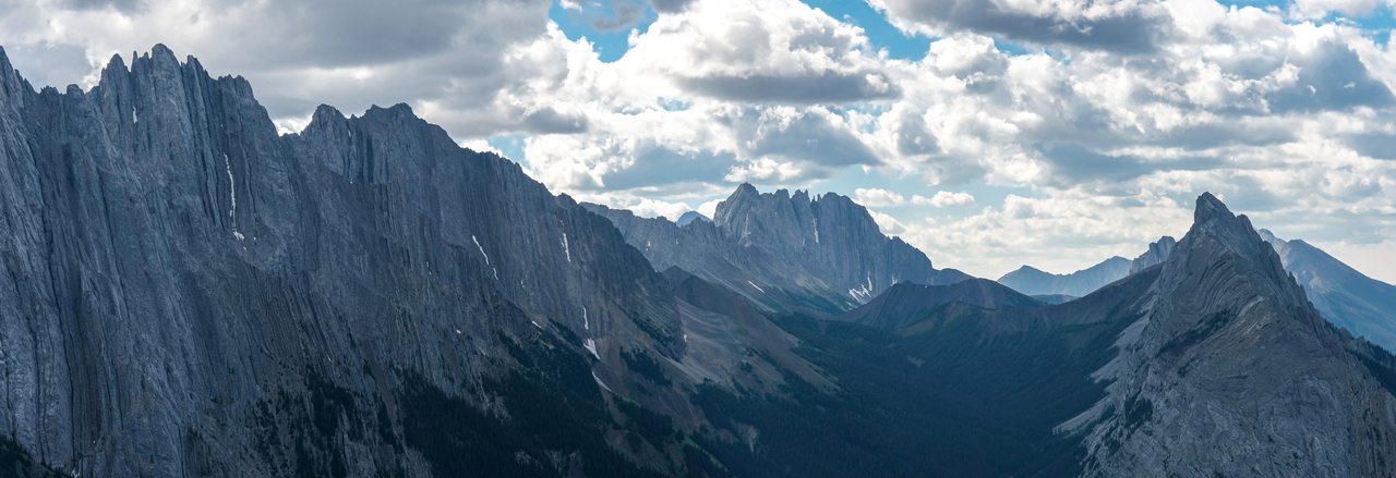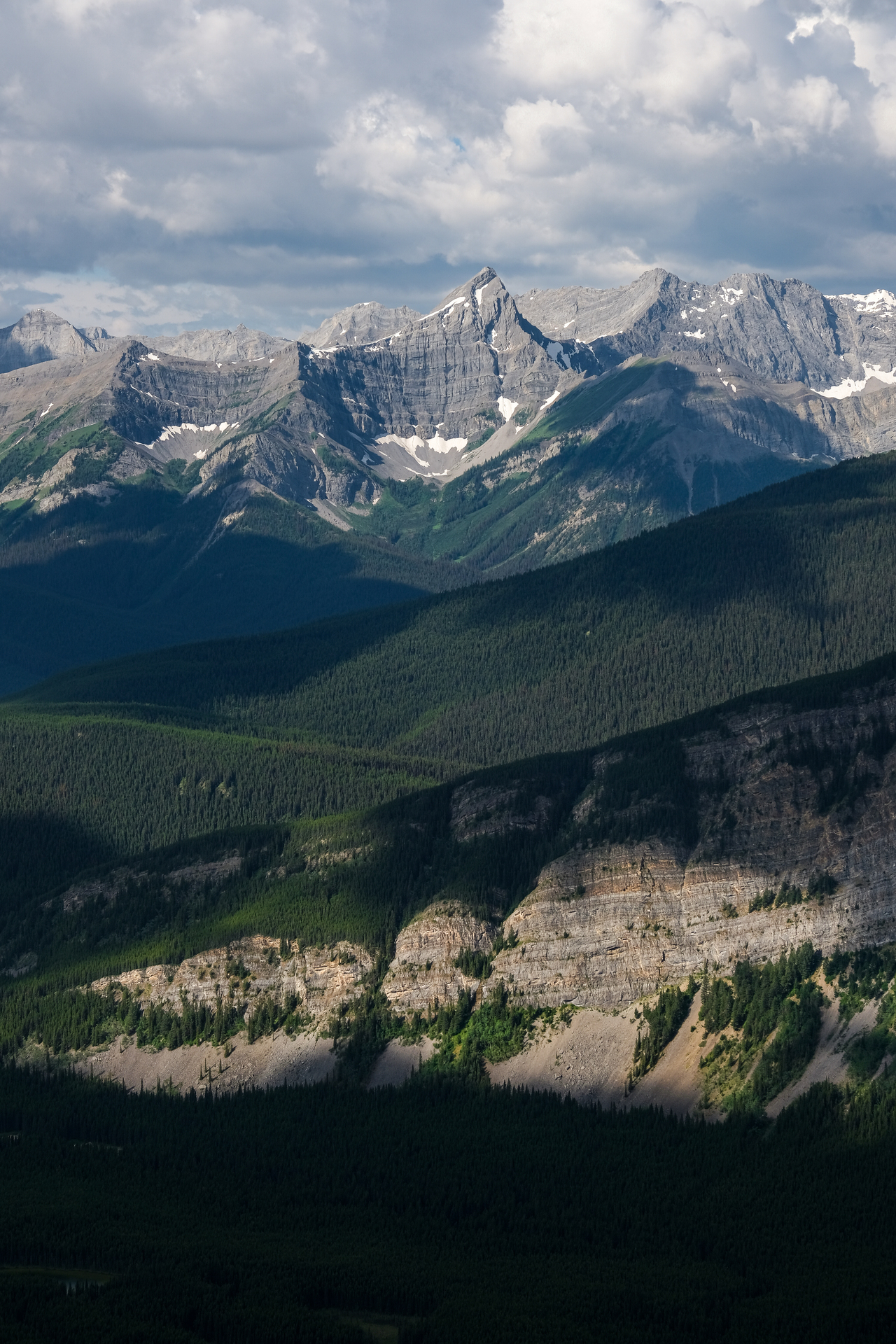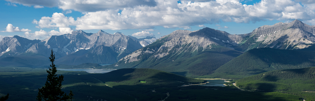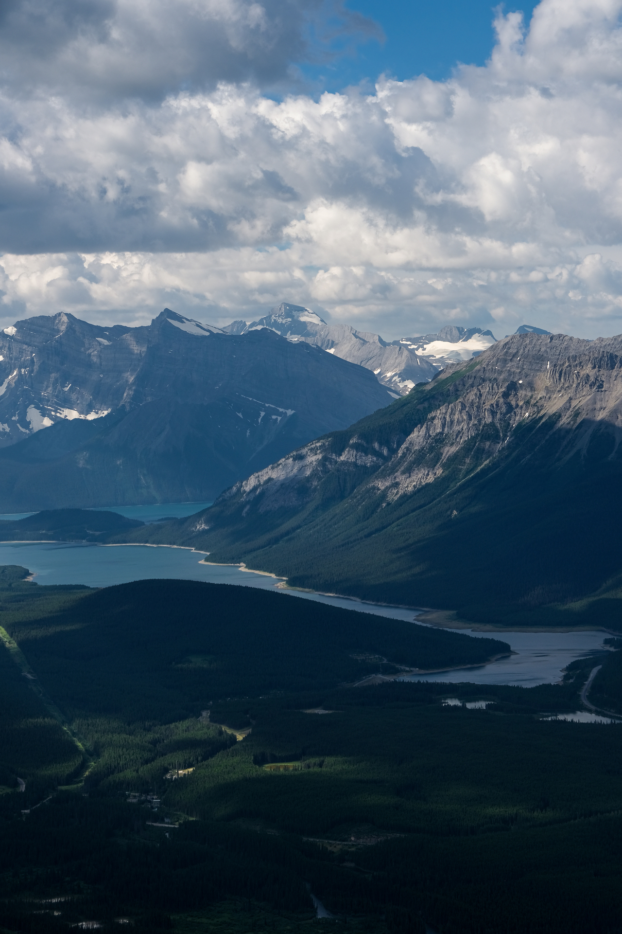 After immediately crossing over King Creek, the trail leaves the highway and quickly gains elevation up to KCR's southern end. There were lots of crisscrossing and interweaving trails, all of which should eventually lead to the same place. Thanks to the steepness of the trail, it wasn't long before we were already enjoying beautiful morning views across to Mount Lawson to the north and the Kananaskis Lakes to the south.