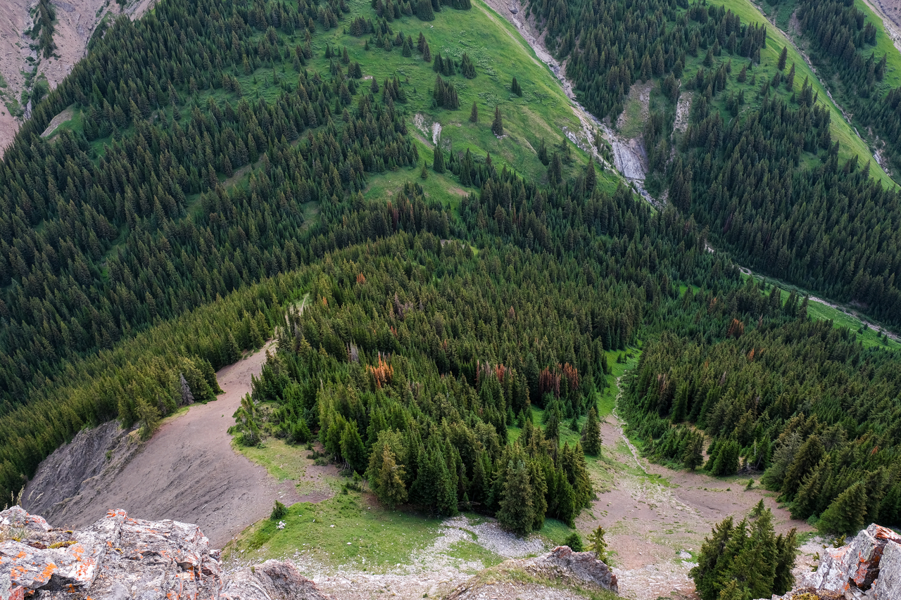 The trailhead for KCR begins almost directly across Highway 40 from the Kananaskis Lakes turn-off. There's a short road leading down to a parking lot, but depending on the time of year there might be a gate blocking it off. If this is the case you can just pull off on the side of the highway.