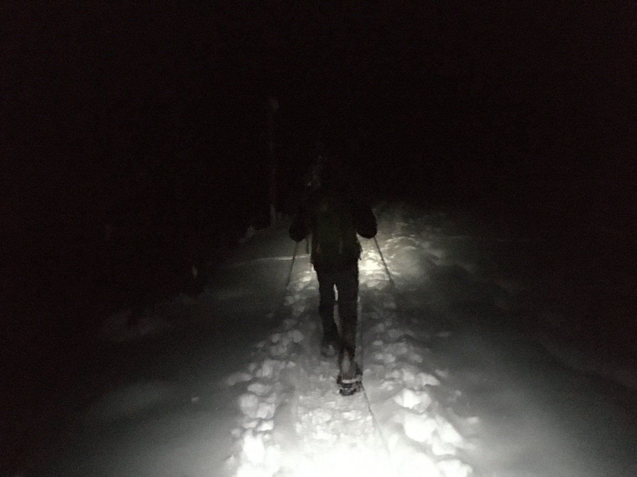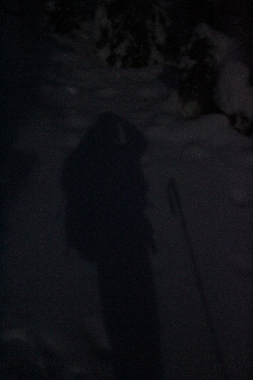 Moon shadow!! The sun quickly set, as we descended the Twin Lakes Trail, but that didn't mean it was completely dark! We didn't even need headlamps until the last couple kilometers with the full moon lighting the way!