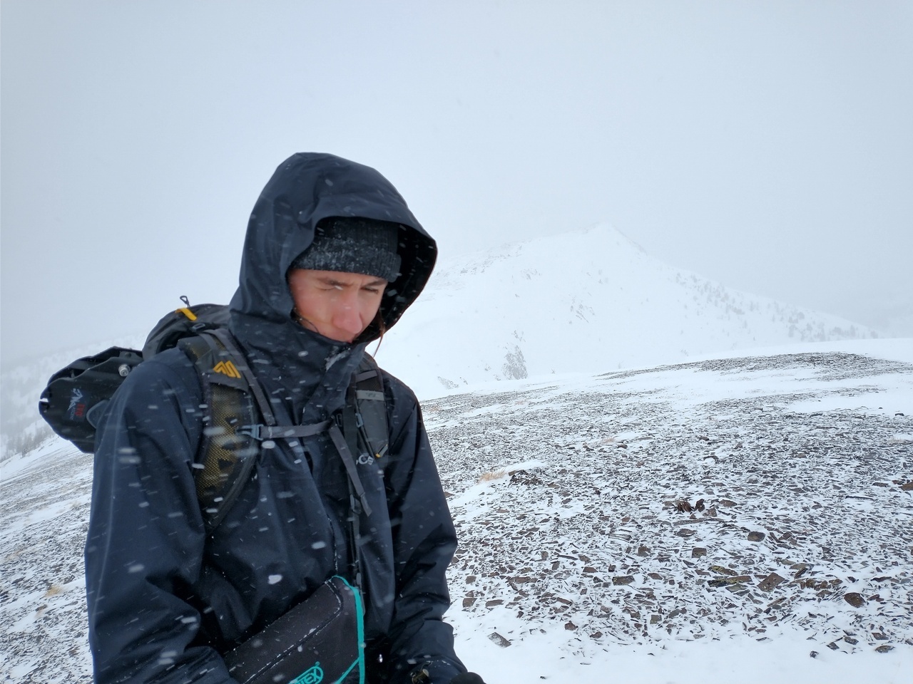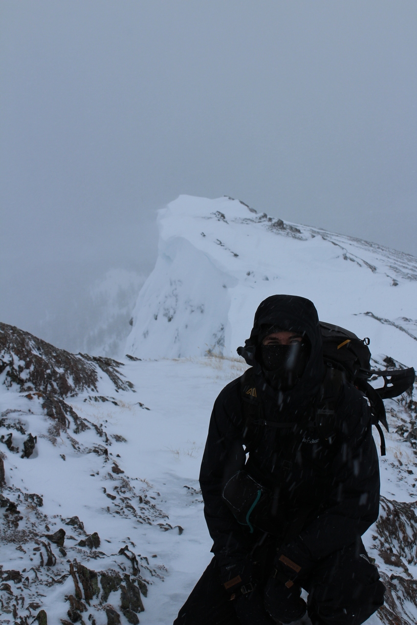 Quickly making my way down from Little Copper's freezing cold summit! Photo credit: Dad