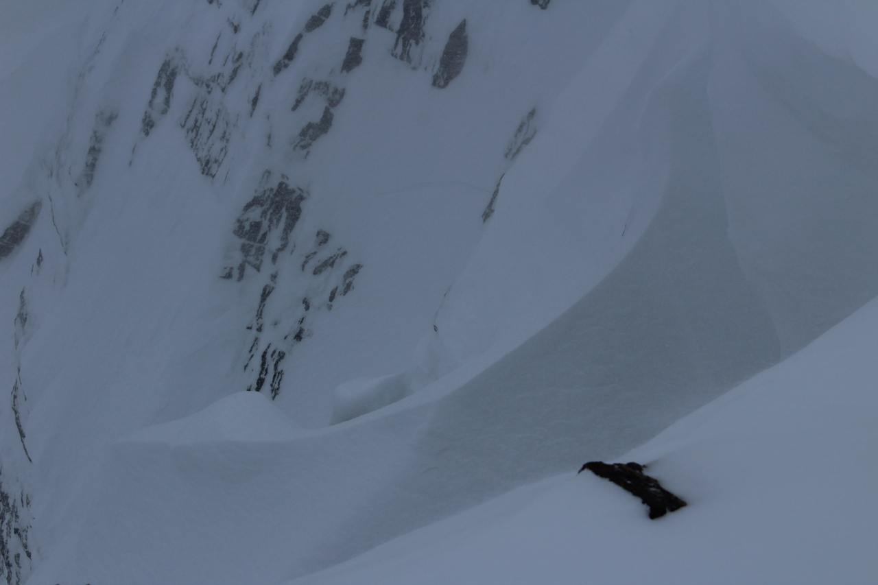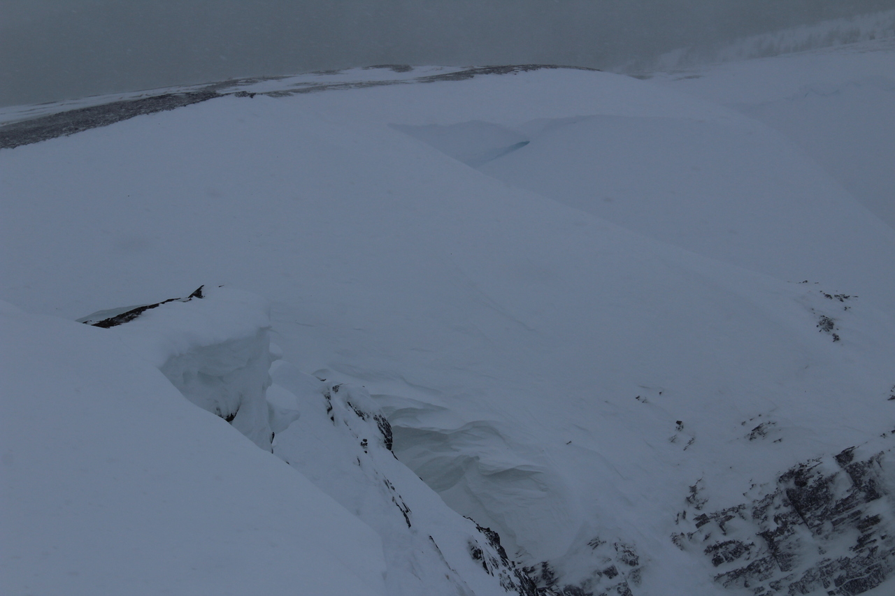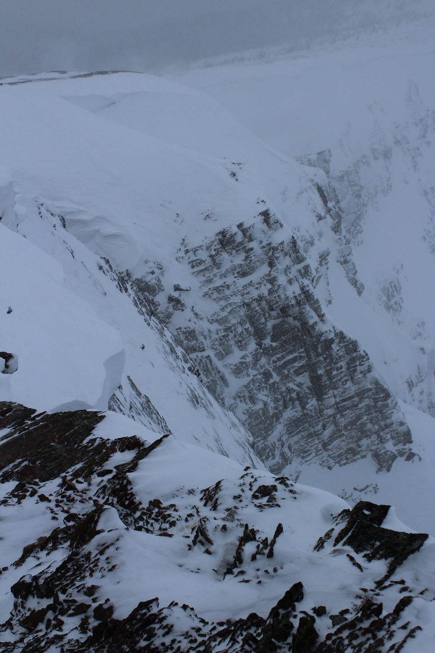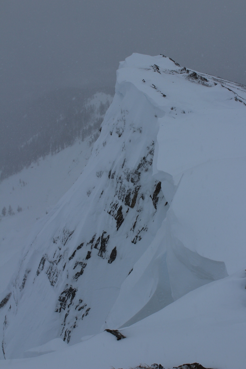 Beautiful cornices overhanging the steep face down from the south ridge as well!