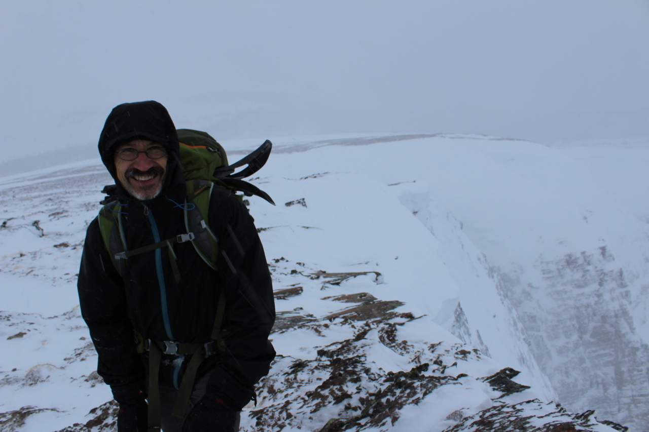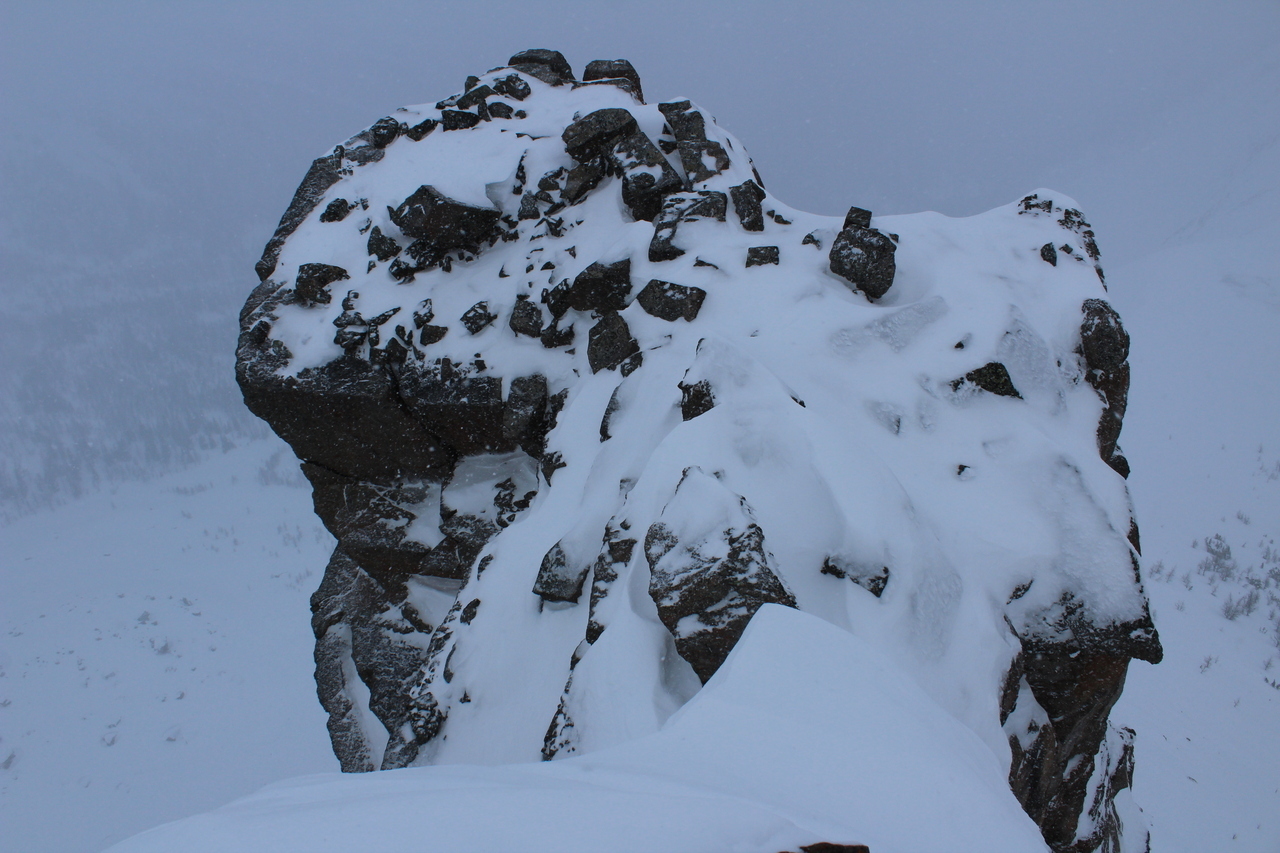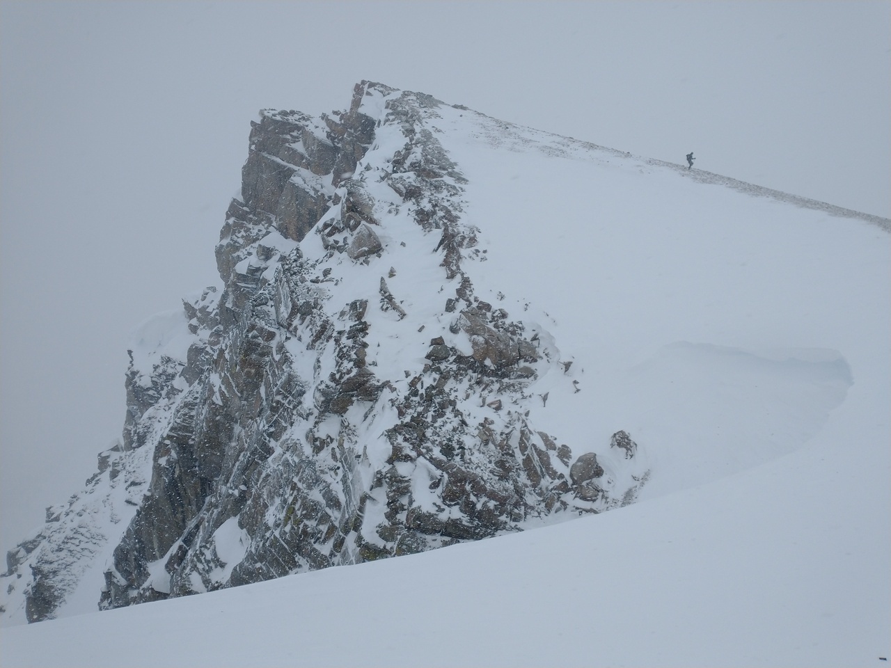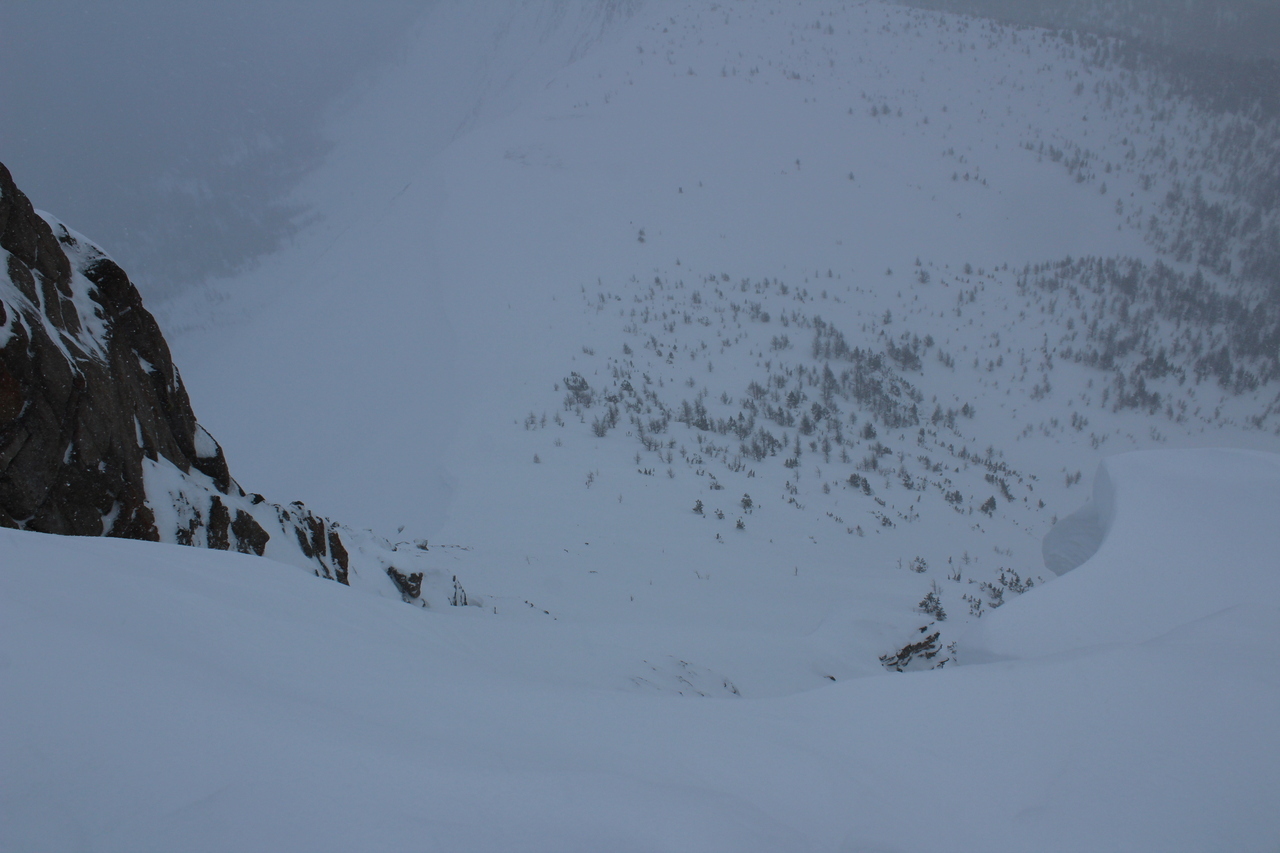 Beautiful cornices overhanging the steep face down from the south ridge as well!