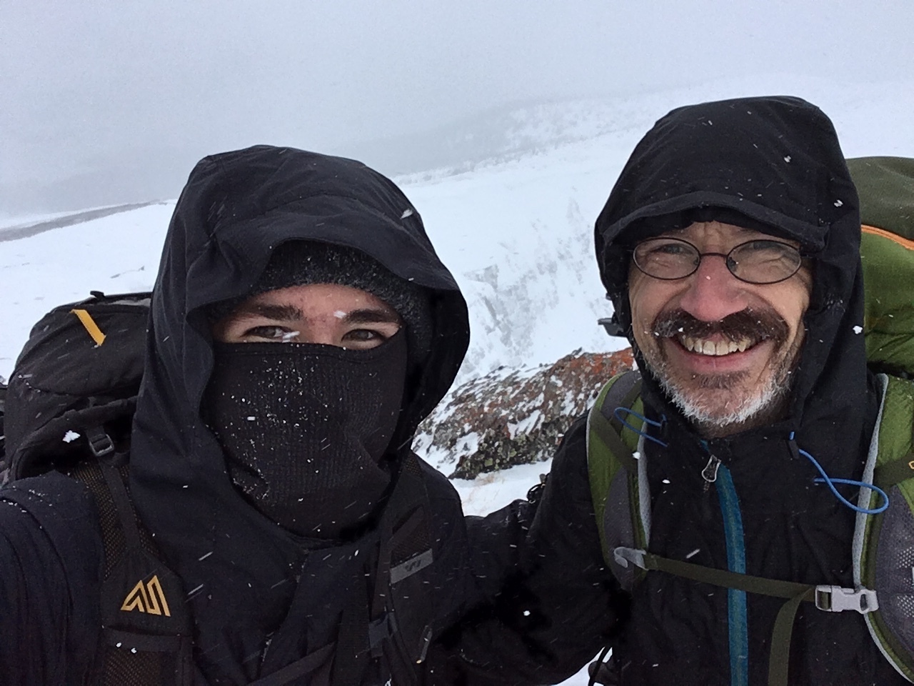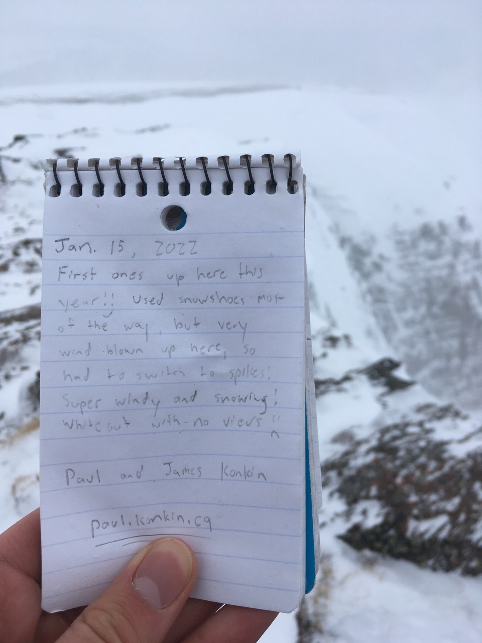 I don't think I've ever experienced as strong winds as we did on this final slope! The winds came fast and furious, without warning, and we had to crouch down in order to not risk getting blown right off the mountain! Photo credit: Dad