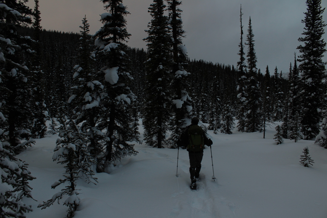Little Copper may not be the biggest in terms of elevation, but in terms of horizontal distance, this trip is not little at all! I came across Little Copper early on, while scouring topo maps for winter objectives, but with it being over 20km round trip, in winter, with limited daylight, through uncertain snow conditions, I wasn't sure if it was the smartest idea to undertake such a task! I'd read a couple reports of ski ascents, so I knew this peak should be do-able in winter, but you don't have quite the same speed on snowshoes as on skis...and skiing wasn't an option yet, with the incident last week on Wolverine Ridge...so I guess we start early and see where it goes!