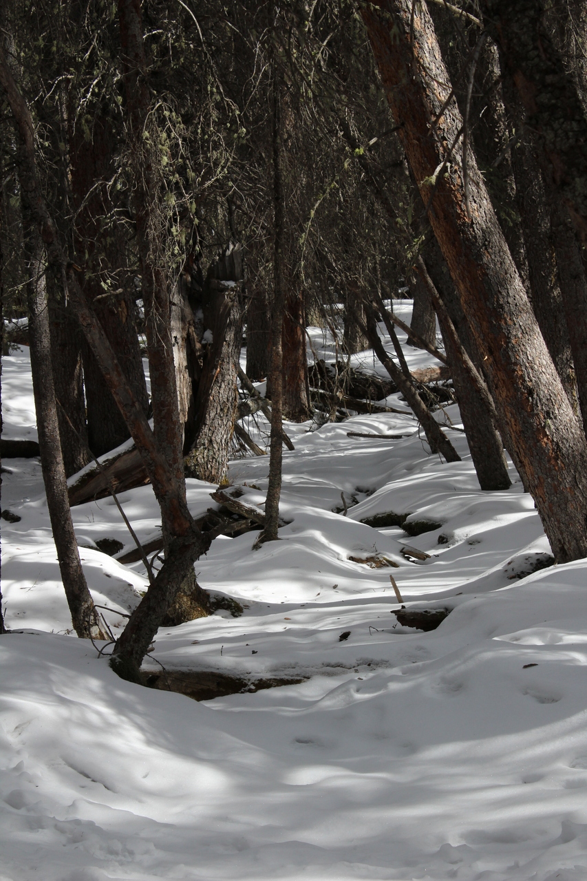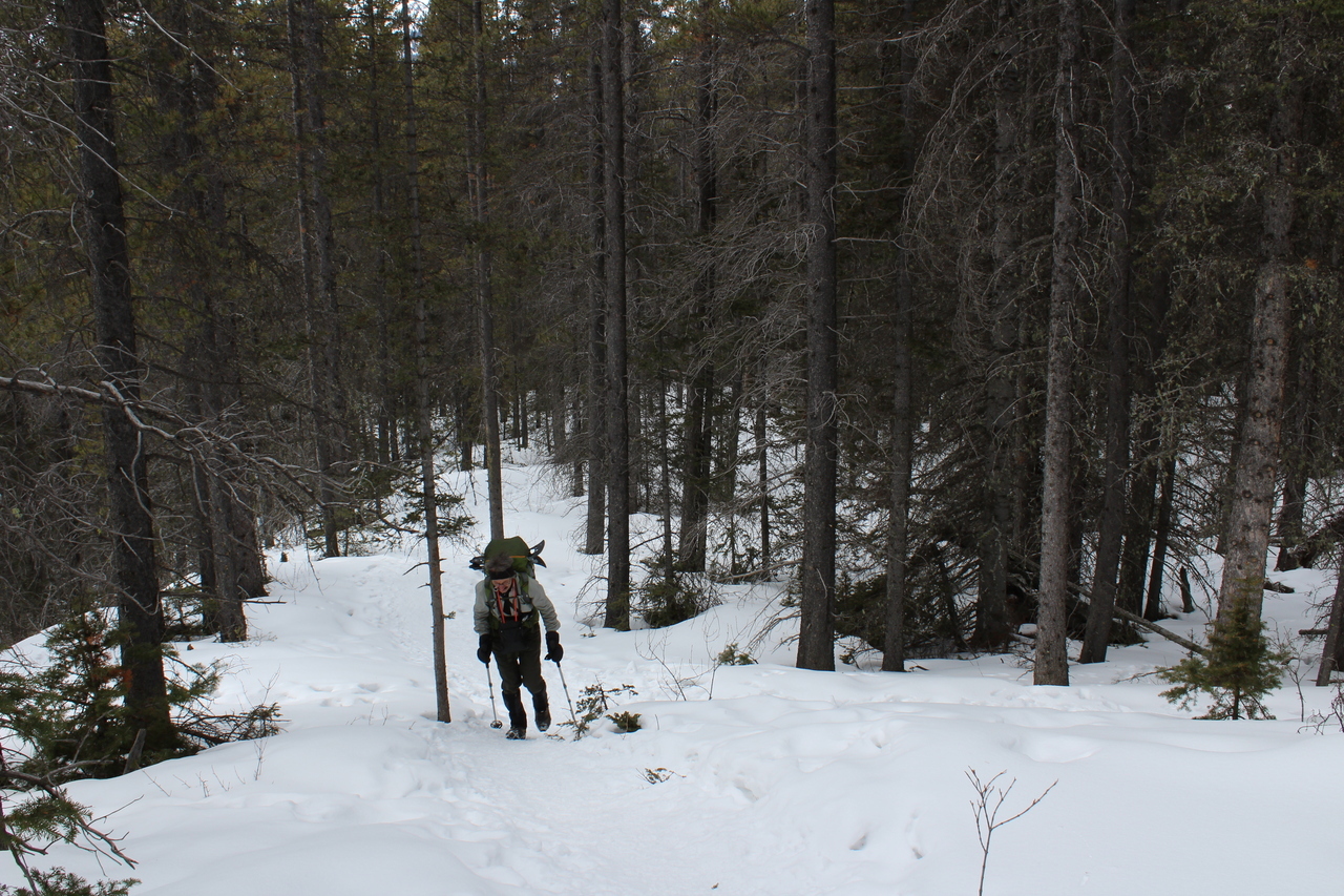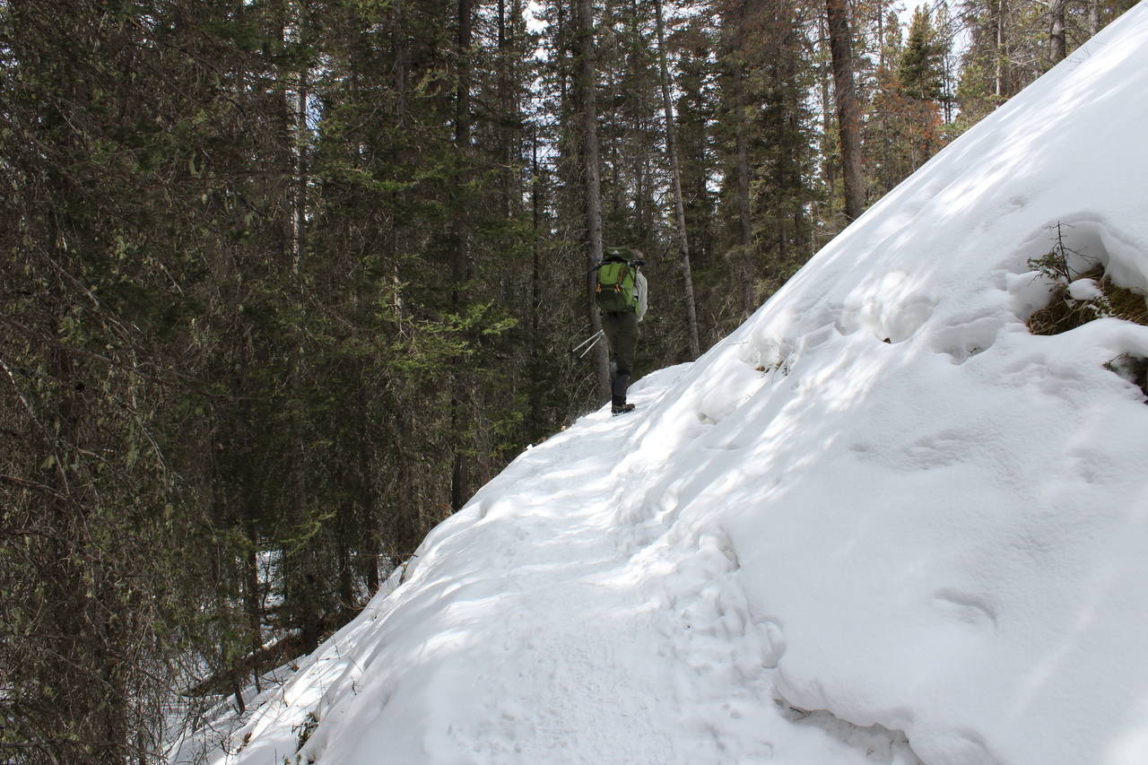 We soon came to a second junction, this one with a trail (High-Rockies Trail) branching off to the left, but lucky for us, we weren't the first ones up Little Lougheed this winter, and simply continued straight, up a well packed trail gaining elevation above Spencer Creek.
