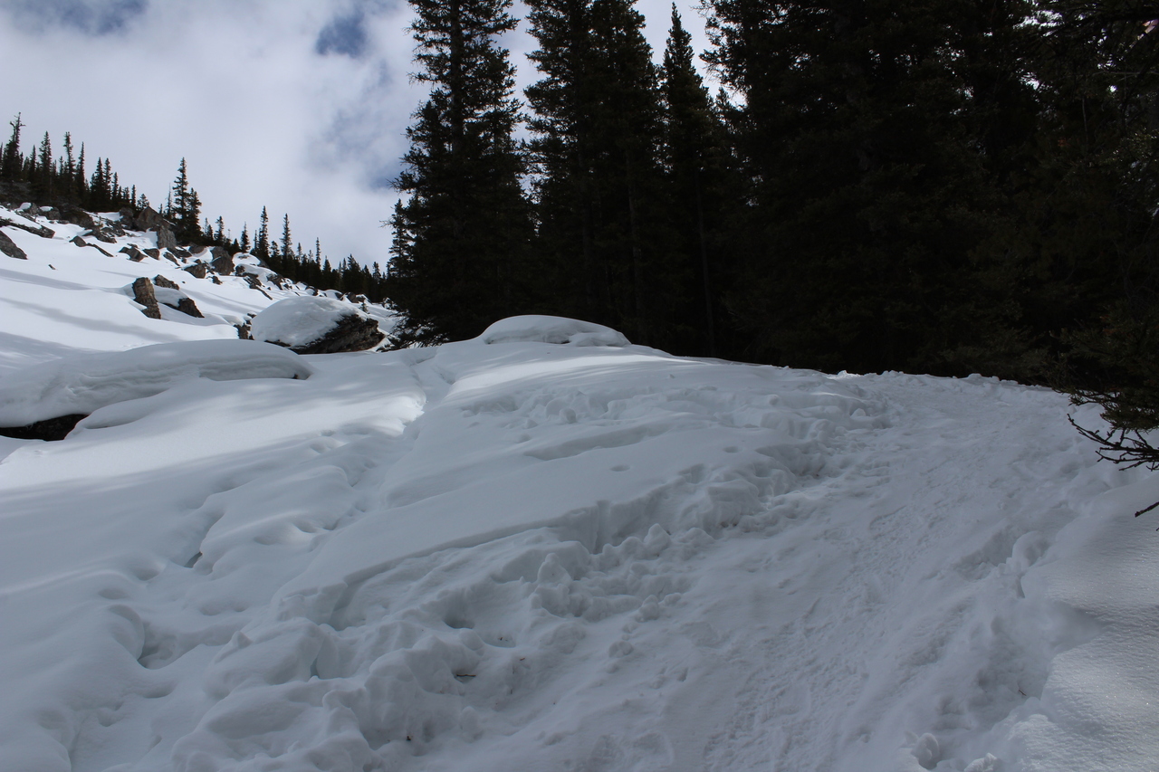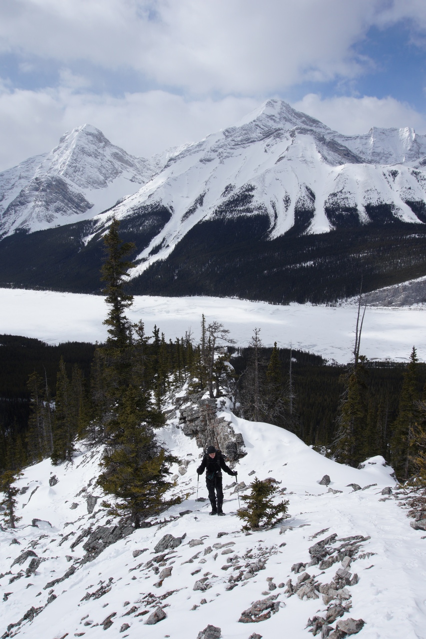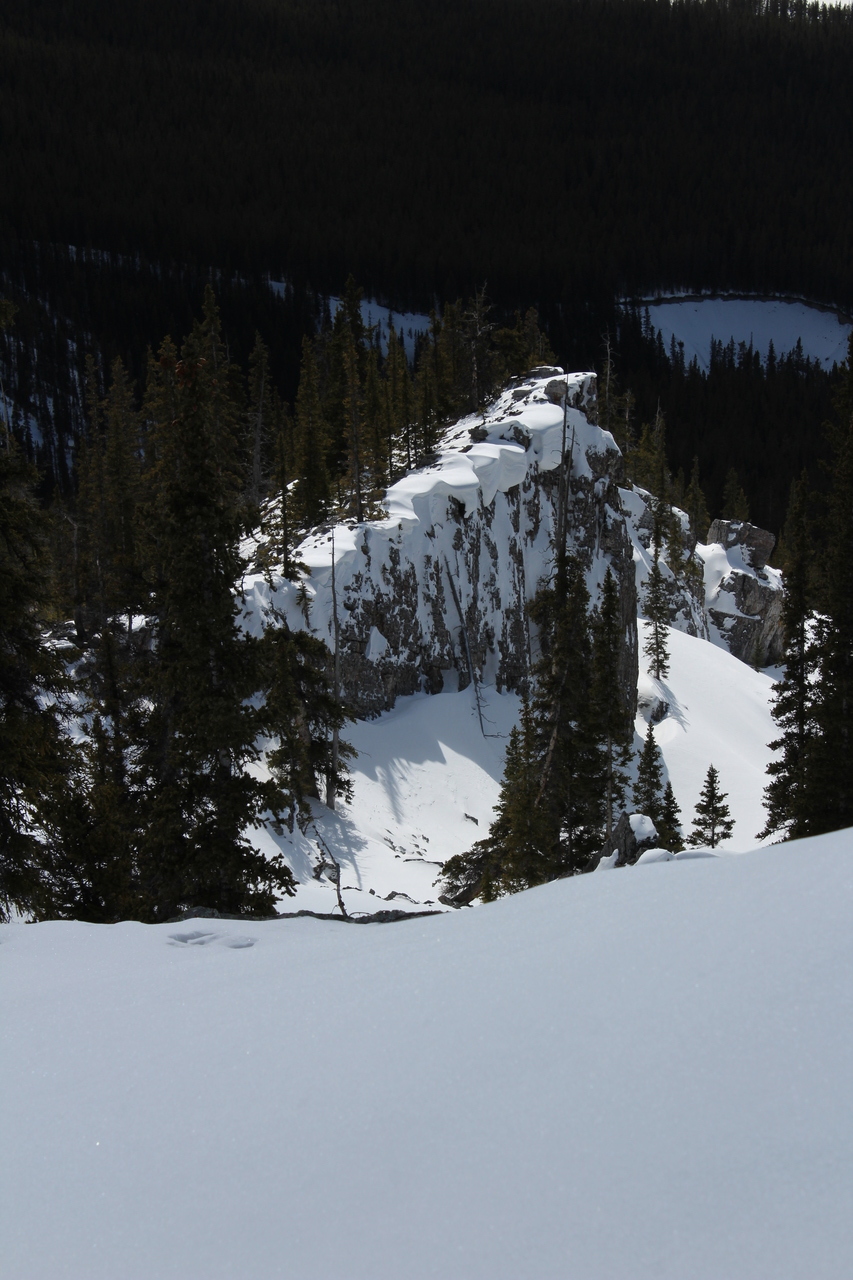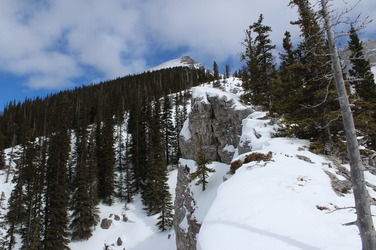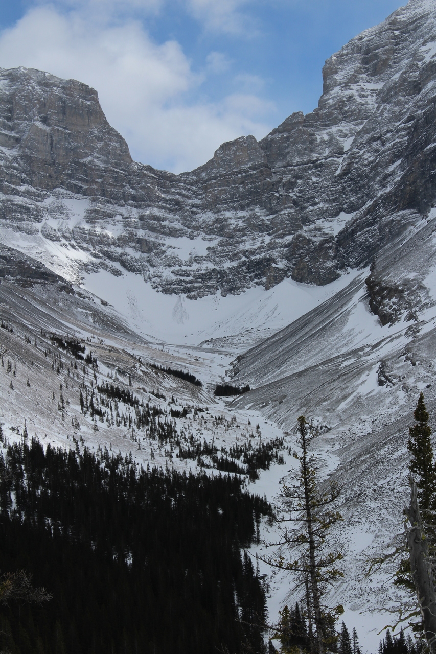 Great (safe!) place to watch avalanches come tumbling down Mount Sparrowhawk's sheer north face!