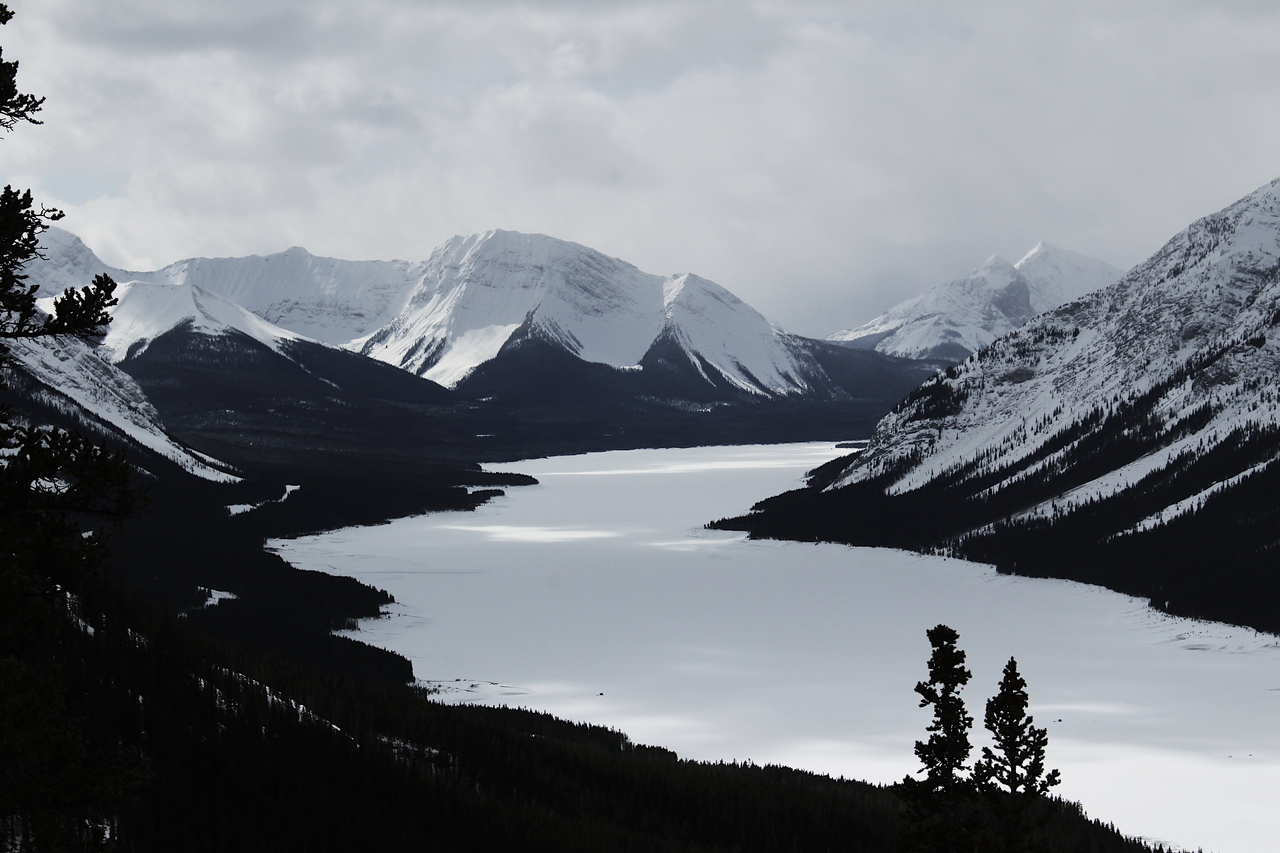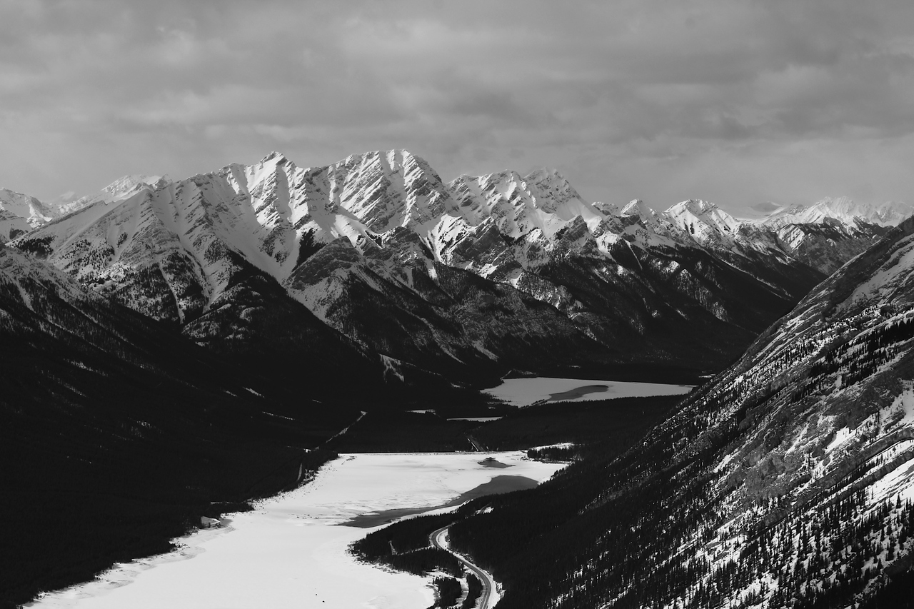 Looking down the hidden valley that sports Mount Lougheed's scenic approach.