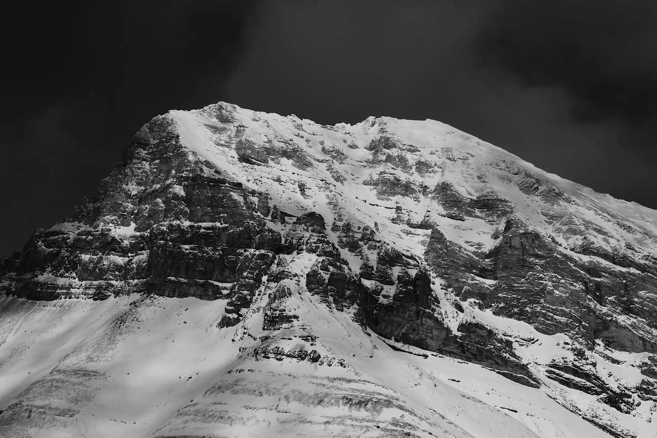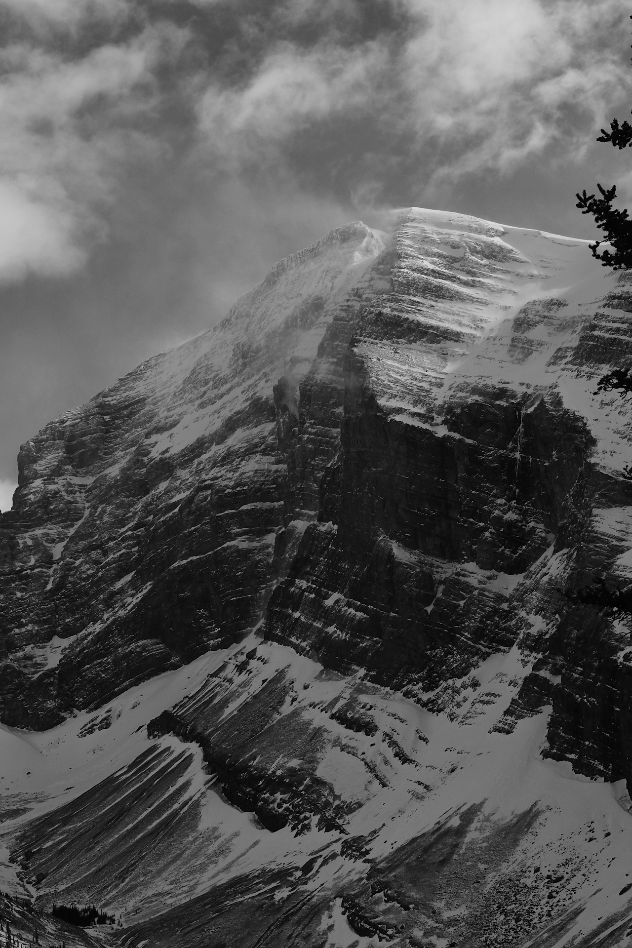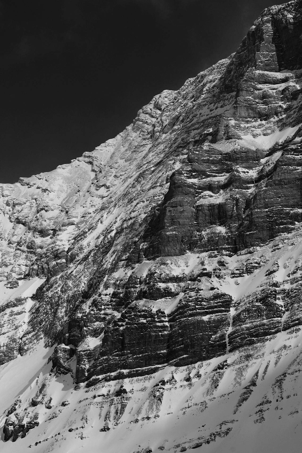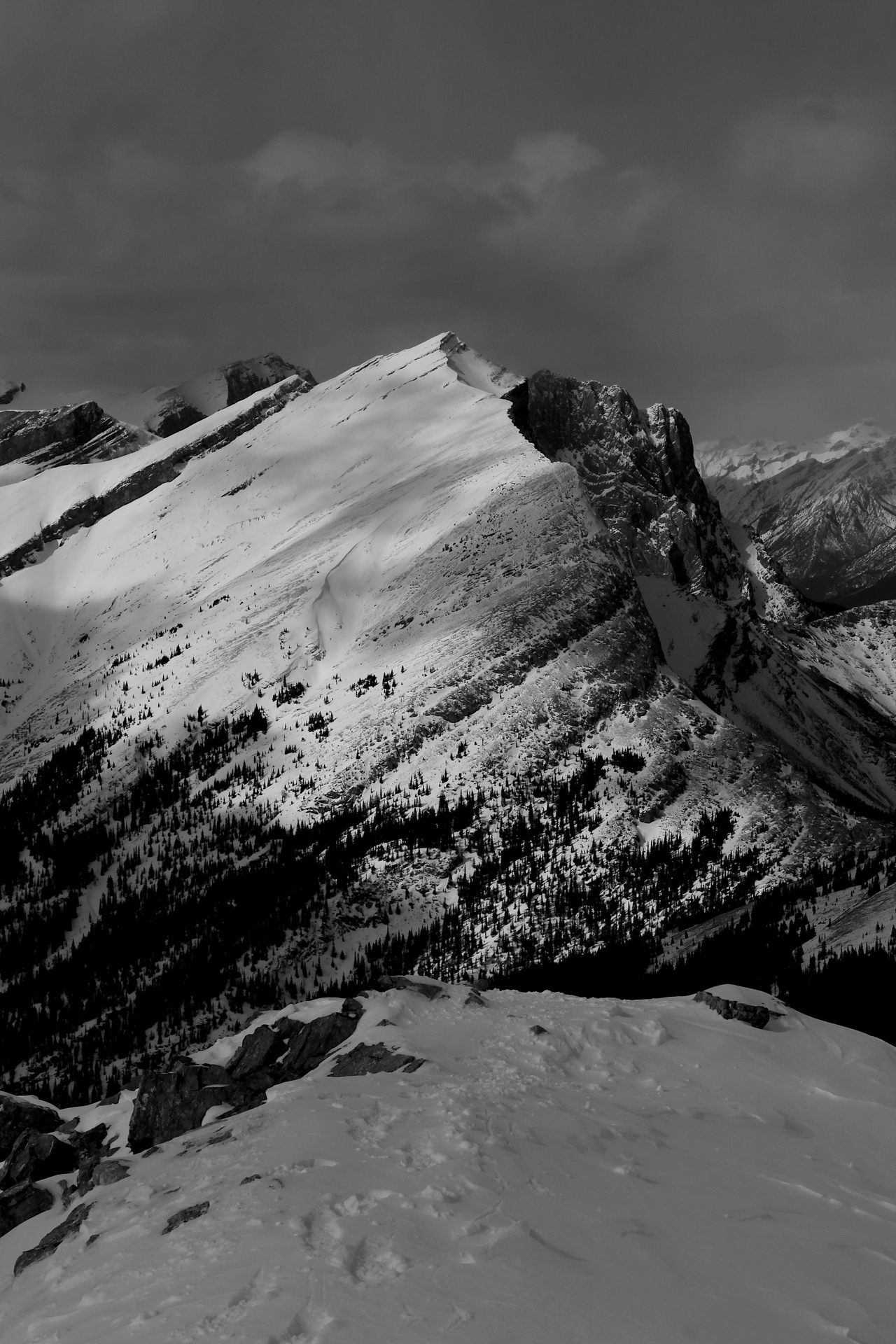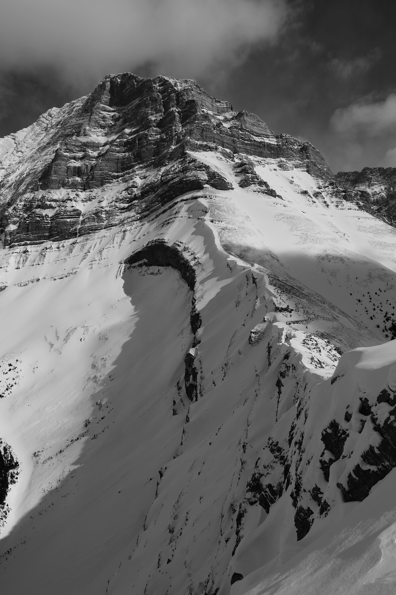 Looking along the corniced connecting ridge to the mighty Mount Lougheed, looming over 600m above!