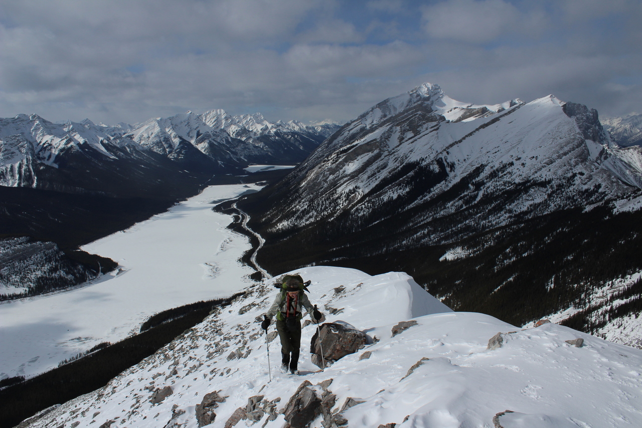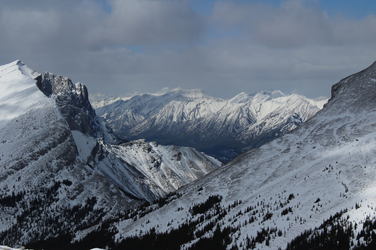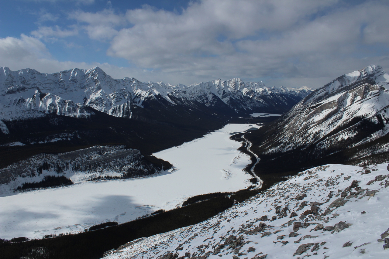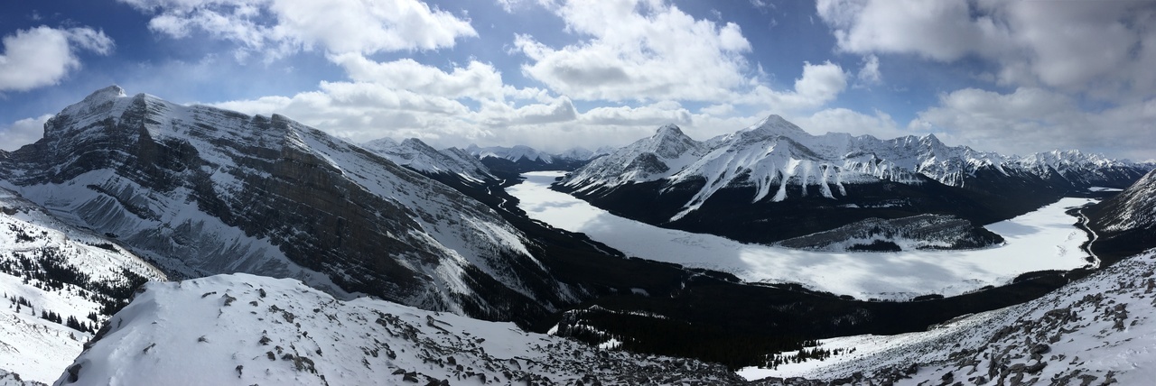 After a quick hike up Exshaw Mountain in the morning, followed by picking up my dad's skis, we still had plenty of time in the day and headed up the sketchy (especially in spring), narrow, rocky road up to Spray Lake, hoping to bag a second summit! With the grey cloud from earlier in the morning breaking up, revealing blue skies and a bright sun, saying I was eager to run up a mountain would be a major understatement! (We haven't really had the best luck with views in Kananaskis this winter...) I was personally hoping to scramble up Read's Tower, but my dad suggested we try my second choice in Little Lougheed (worried about avalanche risk and amount of time left in the day for Read)...And I'm sure glad he did!! Clear, winter views on this little peak are absolutely phenomenal! For the minimal avalanche risk, Little Lougheed definitely offers the "best bang for your buck", and will likely grant you the best views in the area when snow puts other objectives out of reach!