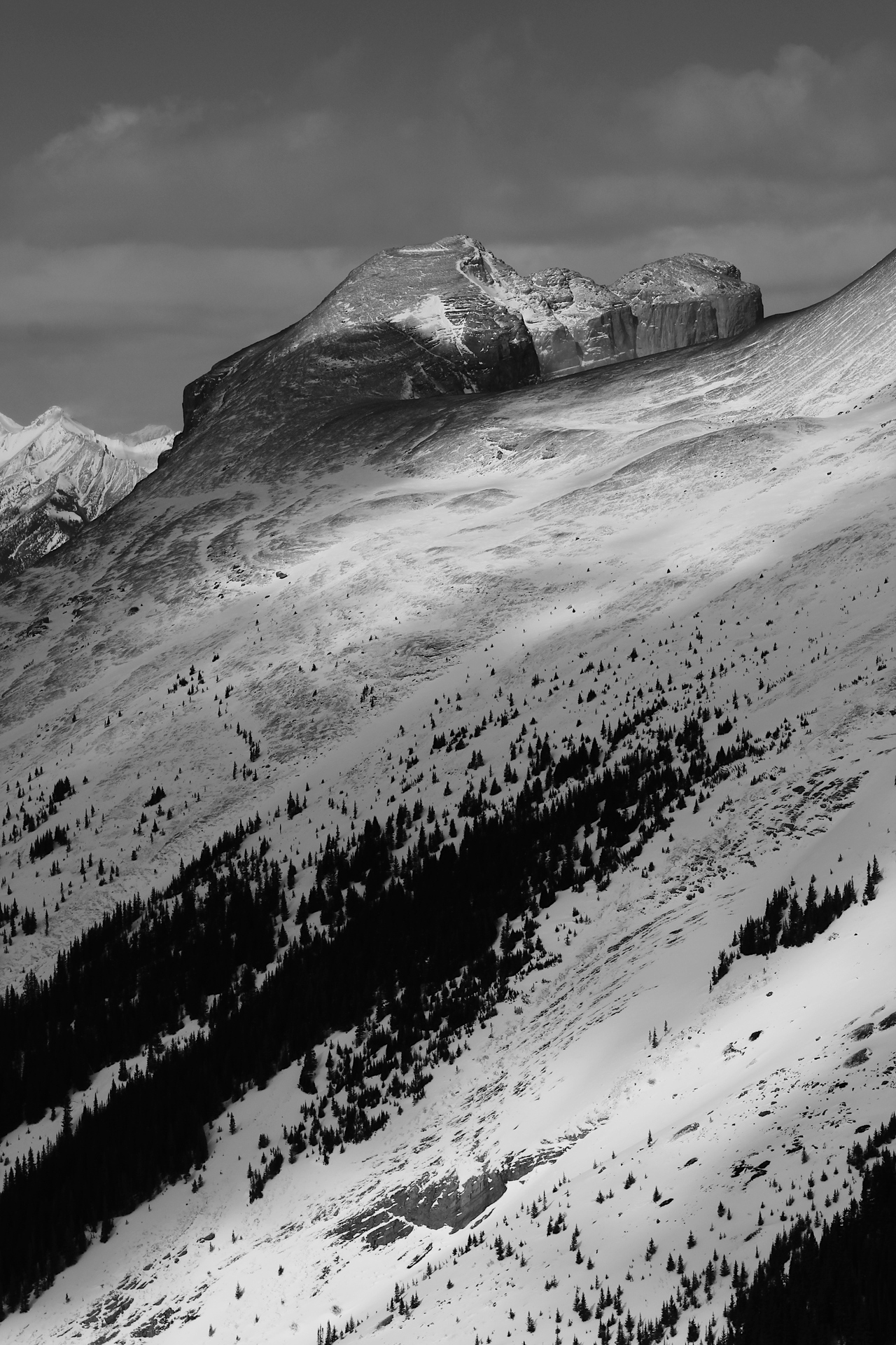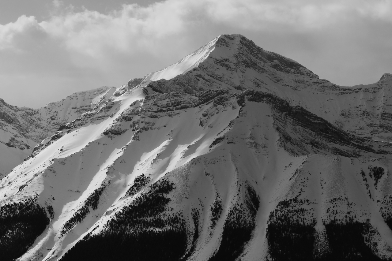 Looking up to Little Lougheed from the highway. Having this comprehensive view of the route allows you to determine if the final slope is windblown enough to deem the ascent safe.