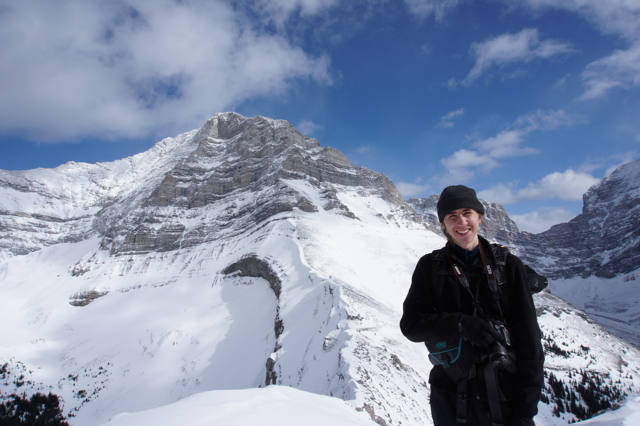 Me, on the summit of Little Lougheed, far below the much bigger Mount Lougheed! Photo credit: Dad