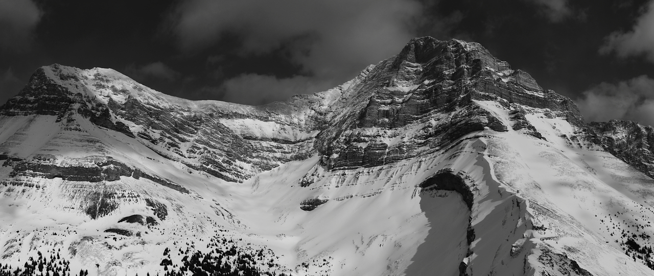 My first attempt at photo stitching! Lougheed 1, and the summit of Mount Lougheed stand right in your face to the east and can't be captured together in one picture!
