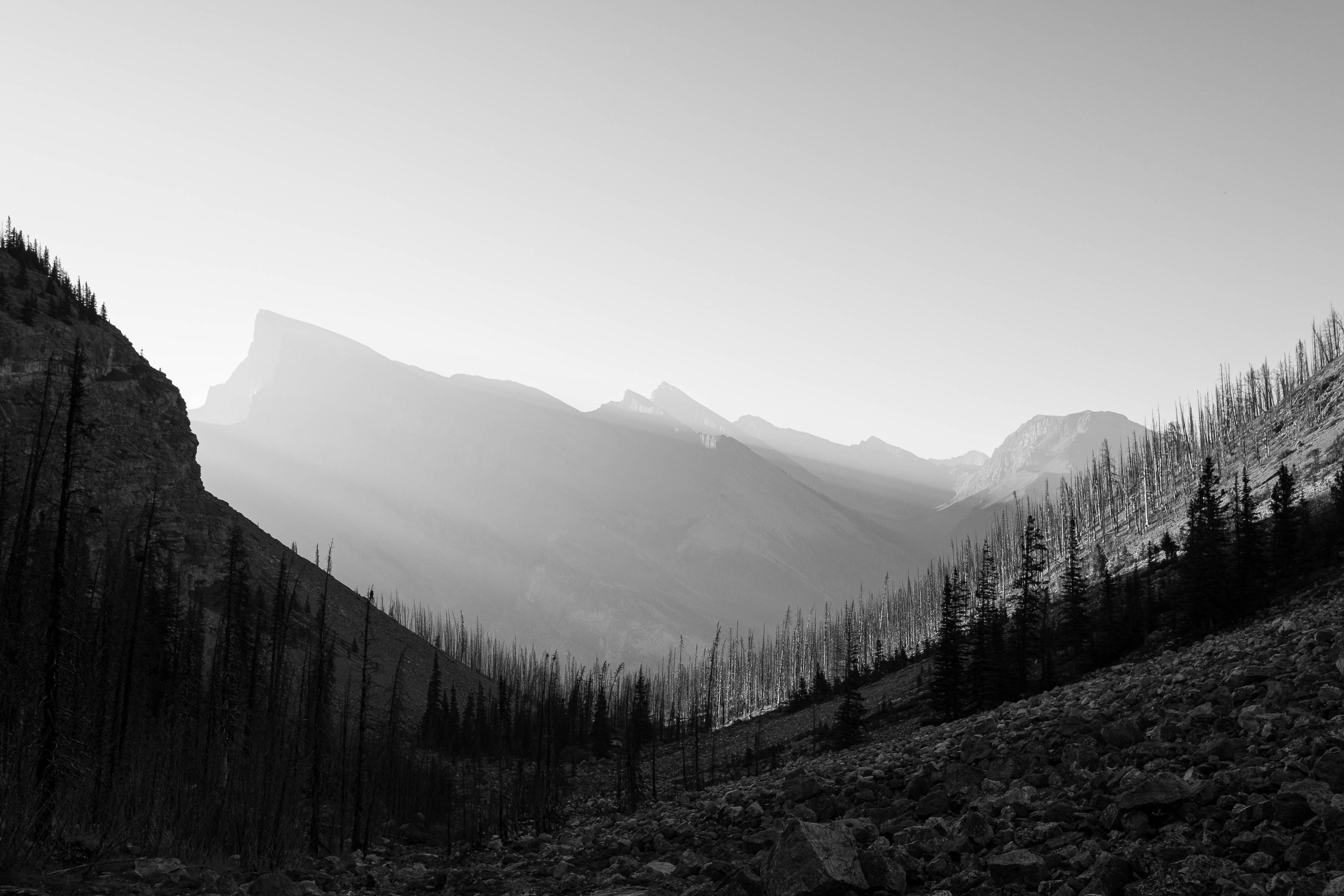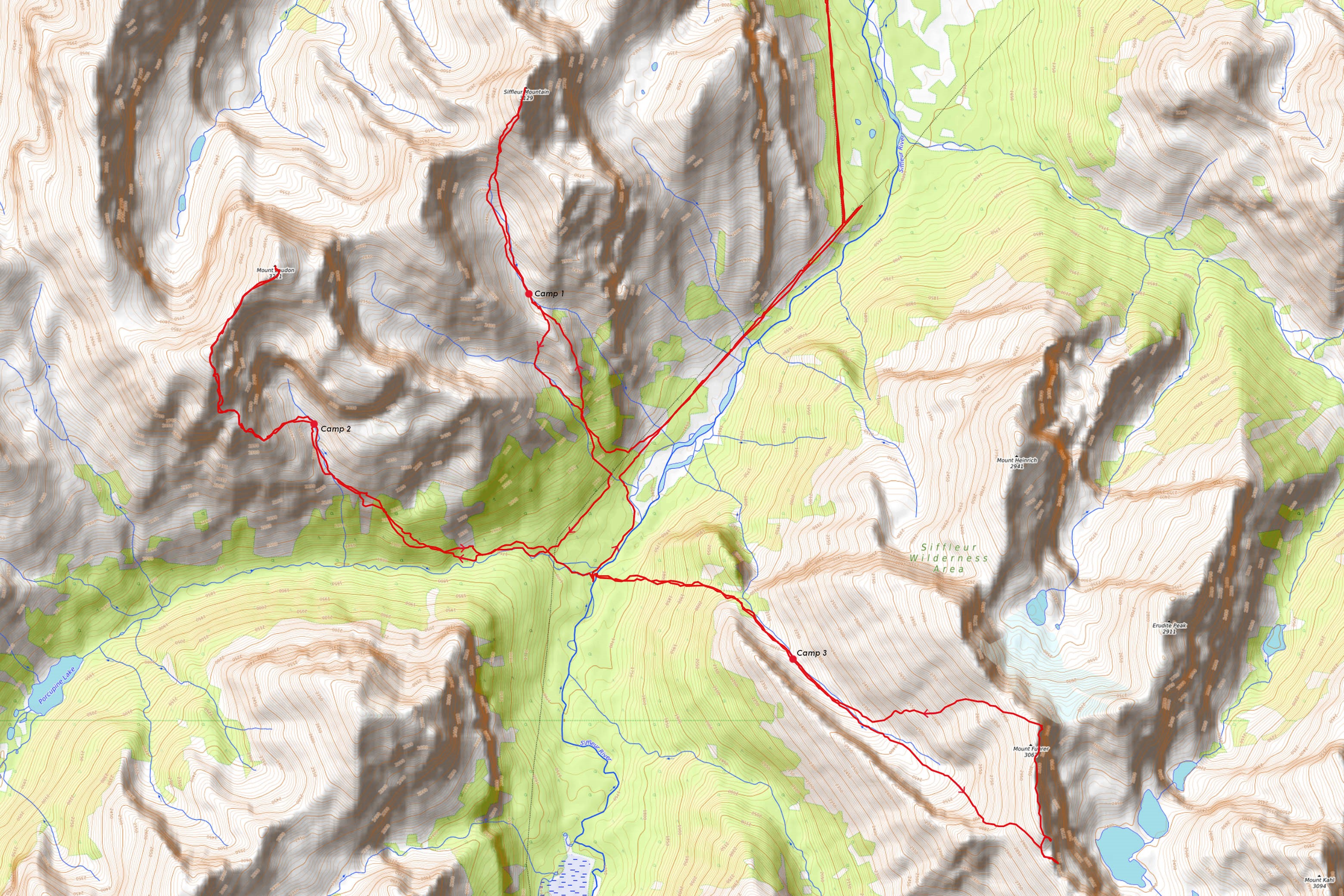Making the long, exhausting trek up the Siffleur River "Trail" and ascending Siffleur Mountain on day 1 was just the beginning, and the second day of our trip would only take us deeper into the backcountry, and with that, the unknown. Our ascent of Siffleur Mountain felt almost a little too easy, benefiting from very recent beta shared to the online world by Vern just one month prior, but now it was time to truly put my route-finding skills to the test on the elusive Mount Loudon, and for this beast of a mountain I was going in almost completely blind. Finding information on Loudon is no easy task and after scouring the web in the usual places the only information I was able to come up with was the following account from Rick Collier, who made the second recorded ascent all the way back in 1998: