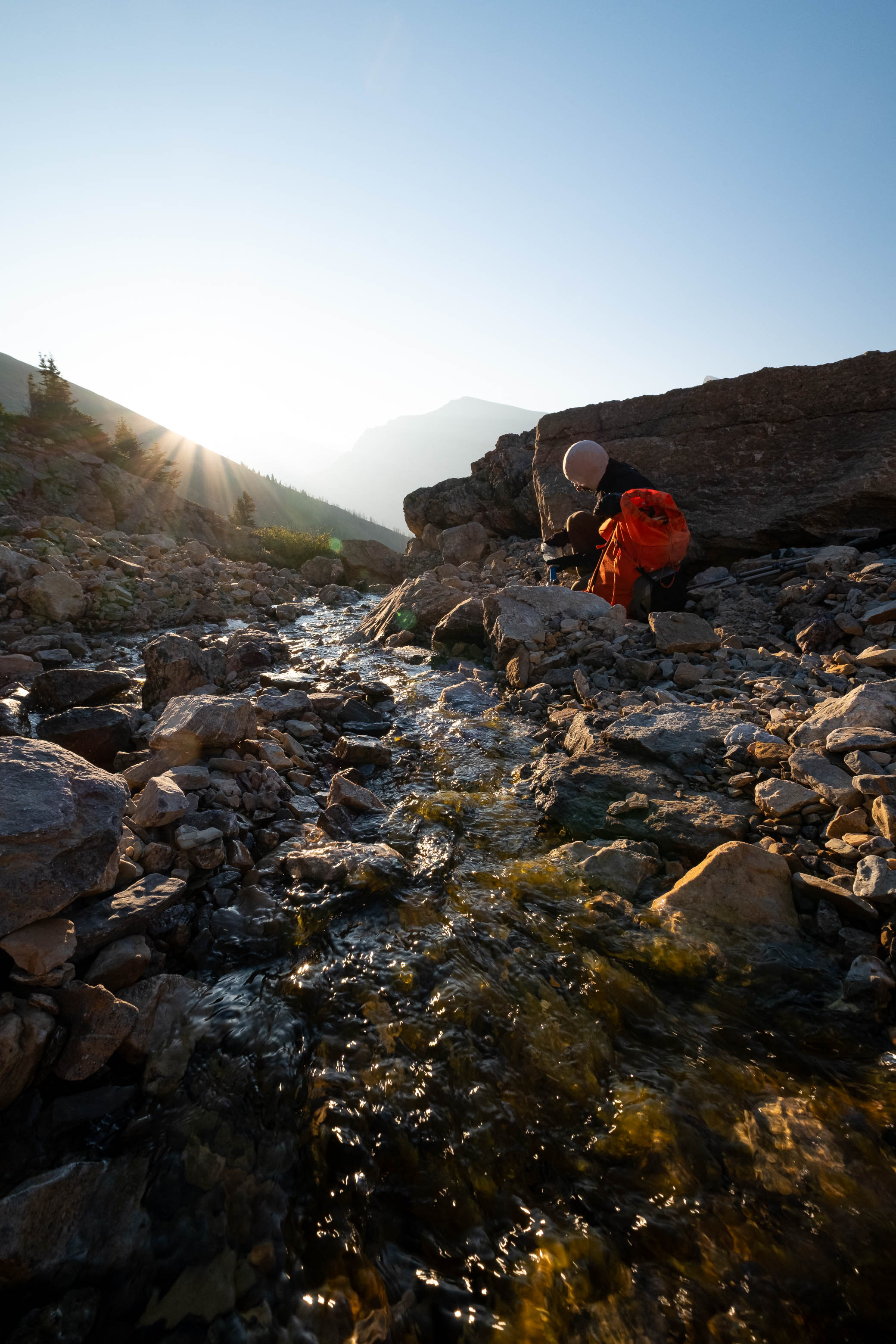 We took our time descending the loose mountainside (the sun already won the race, so what was the rush) and eventually arrived at the lower boulder field - presenting its own navigational challenges in the dark. I was thanking myself BIG TIME for marking the little spring on my GPS earlier (there was absolutely no way we'd be finding it otherwise!), and finally gave in to my body's cries, collapsing beside it and spending the next half hour just sitting there in the peaceful darkness, slowly trying to rehydrate myself. It was a while before I could even start to think about getting any food down, but I did eventually regain my appetite and wolfed down my classic ultralight dinner - crushed corn chips and a can of tuna - and boy was it one of the best tasting dinners I've ever had! 😂