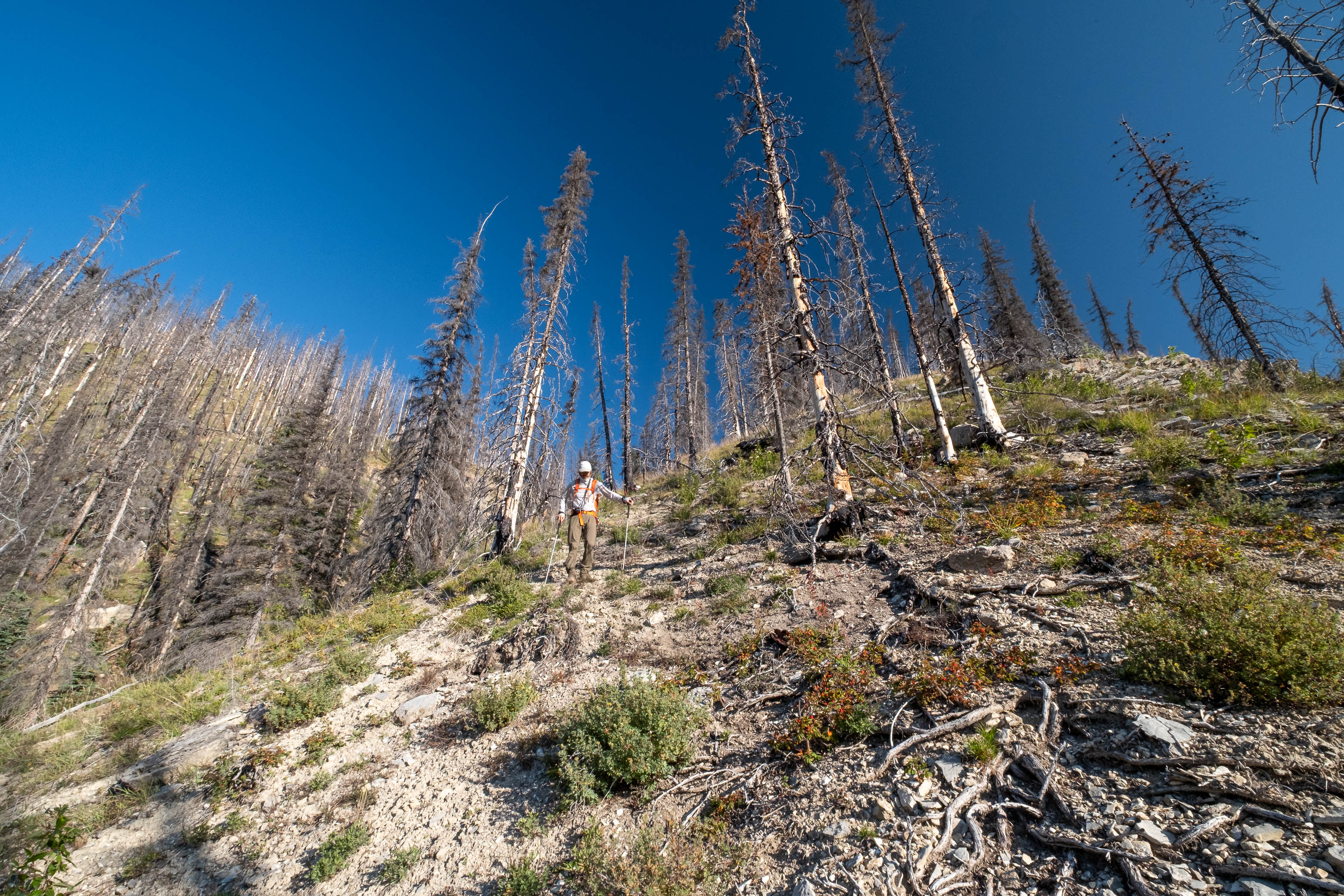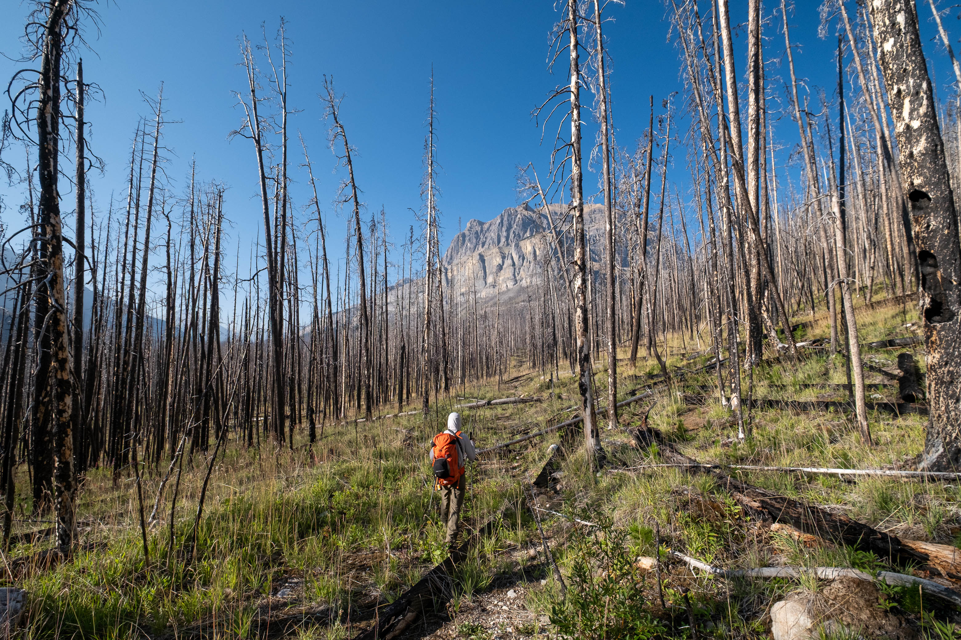 As we continued along the cutline towards Porcupine Creek, we remarked just how strange the thing was. Such a prominent, perfectly straight line, right through the middle of raw, untamed wilderness in one of the more remote valleys of the Rockies. It felt so wrong, out of place, and honestly a little bit eerie. When was it made? How was it made? Why was it made? I had so many questions!