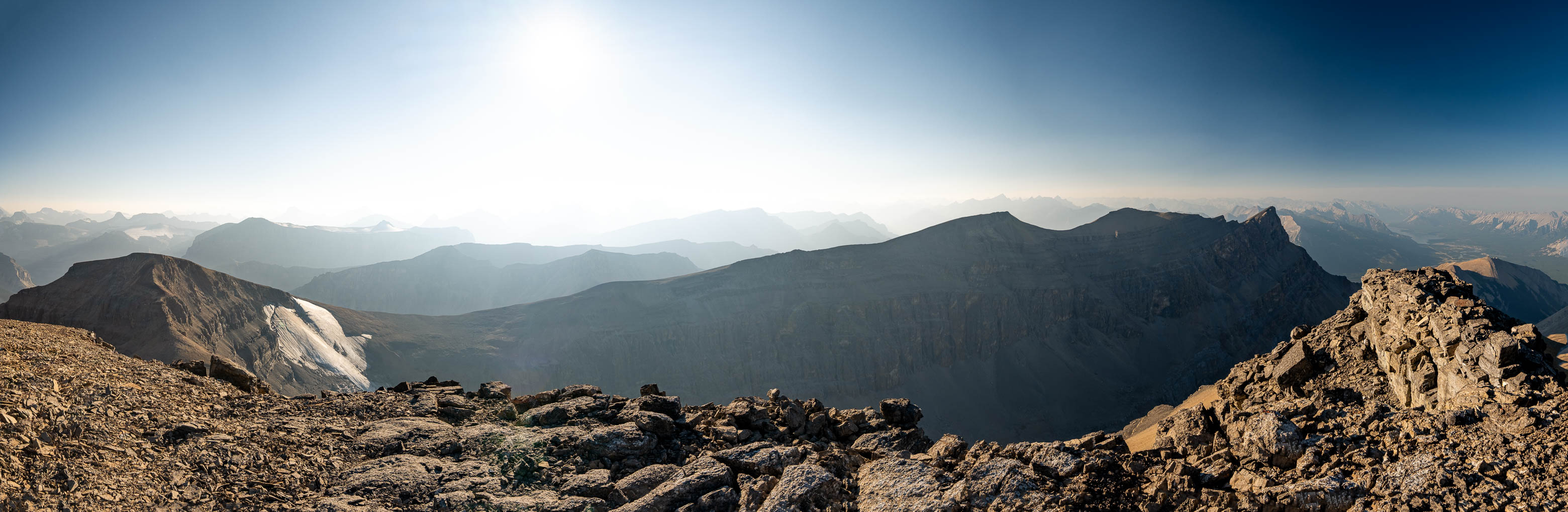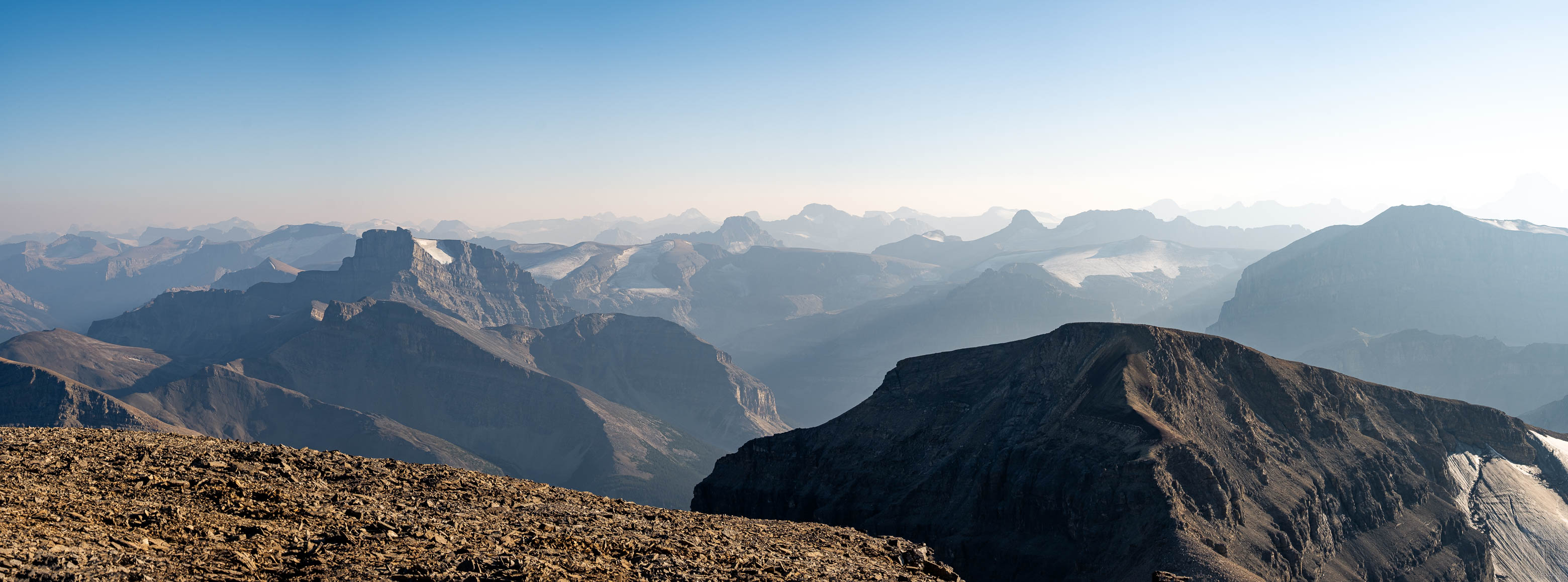 Distance: 13 km (from camp in Siffleur's southern hanging valley, to summit, to camp in Loudon's southern hanging valley)