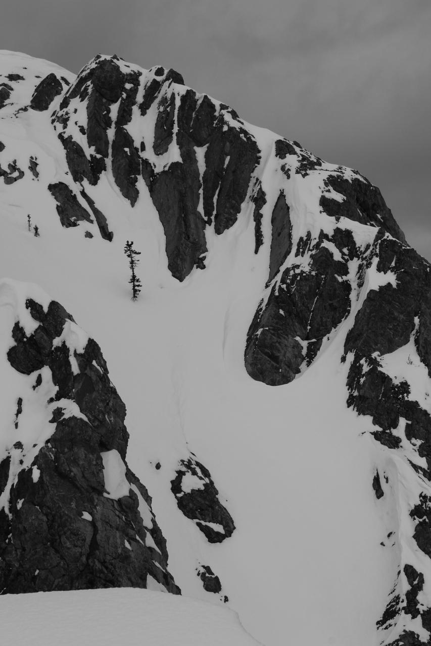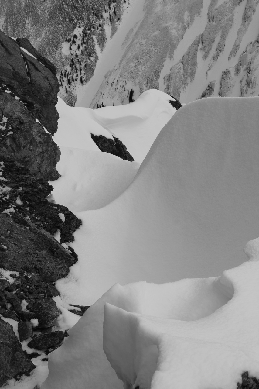 Looking back up to Midnight, at some interesting rock formations, emphasized by the contrast of the snow!