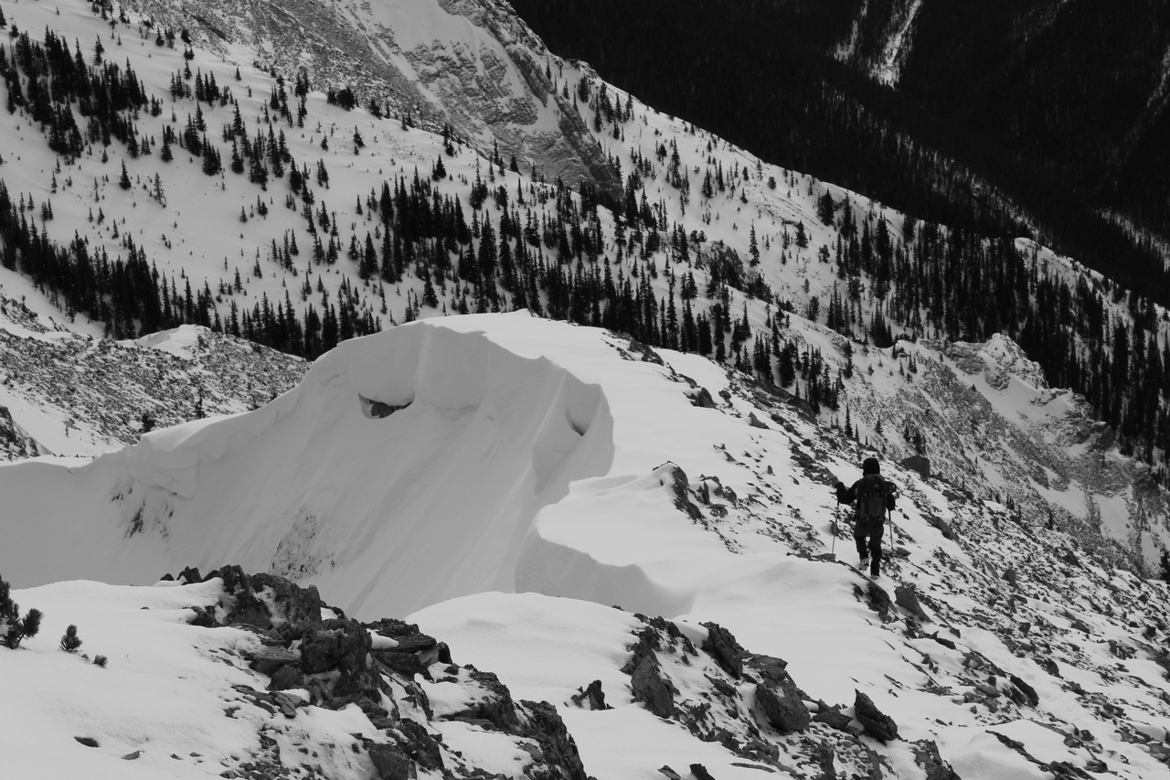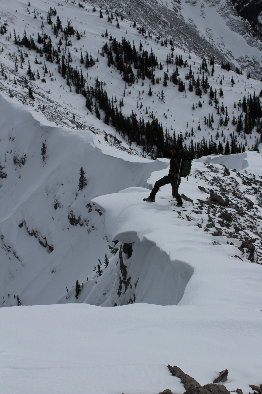 Travel down the ridge was very straightforward, and posed no difficulties, but that doesn't mean it was fast...I constantly found myself pausing to gaze at the sizable cornices, clinging on to the east side of the windblown connecting ridge!