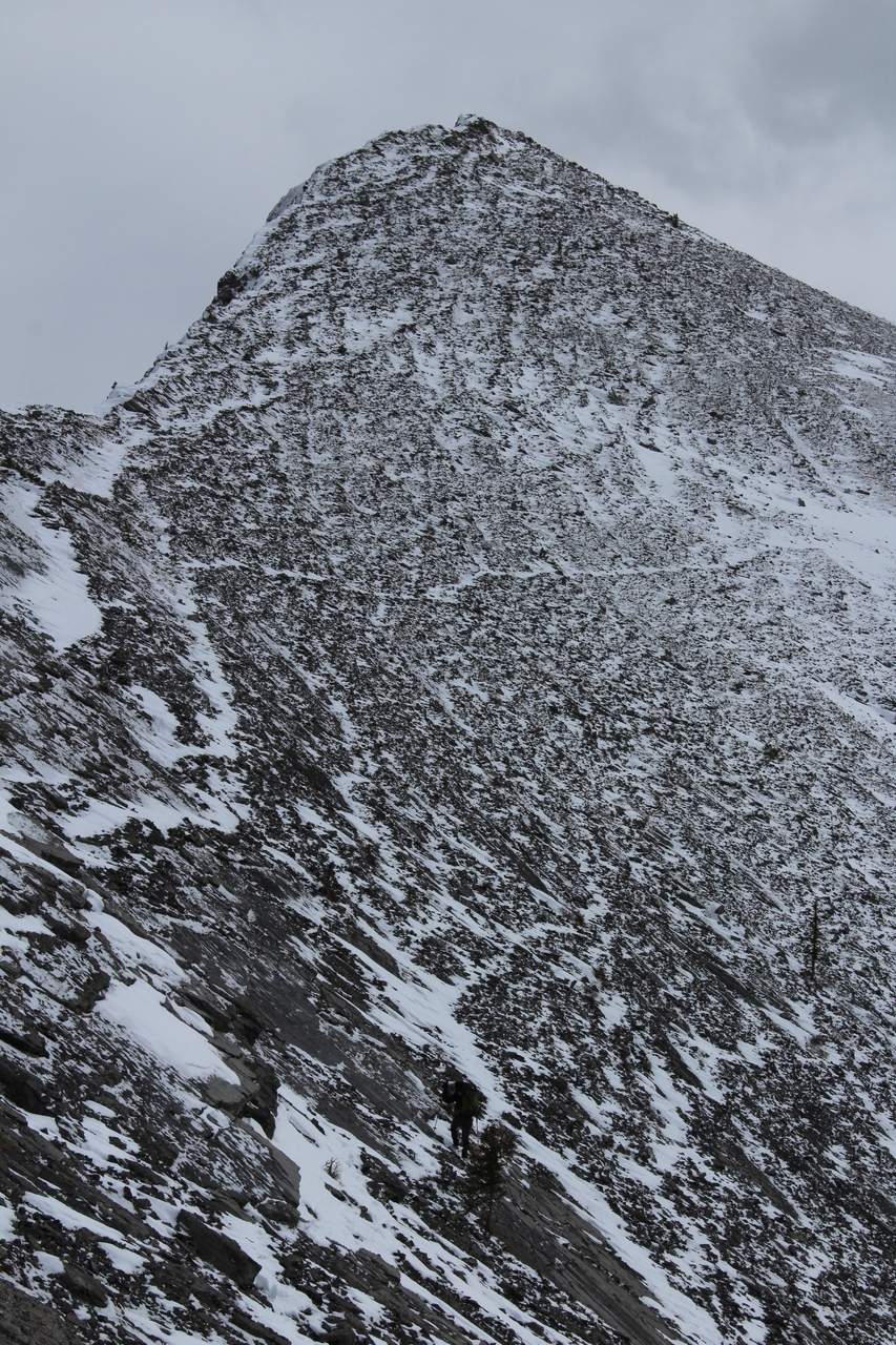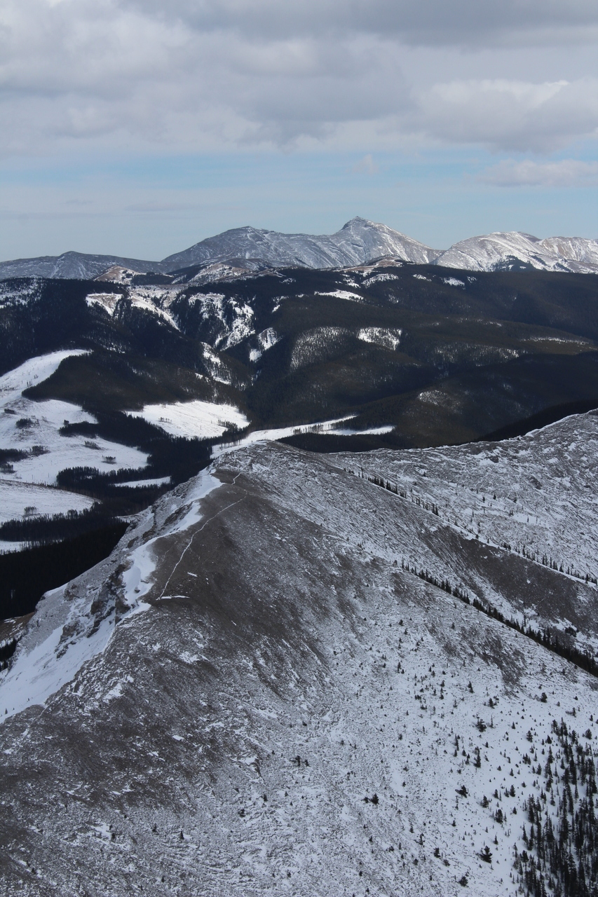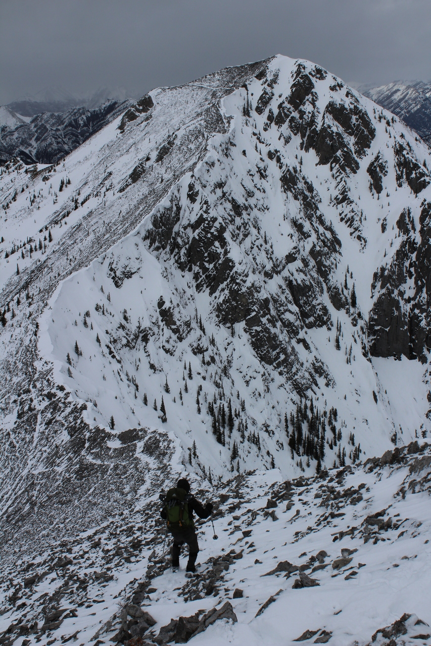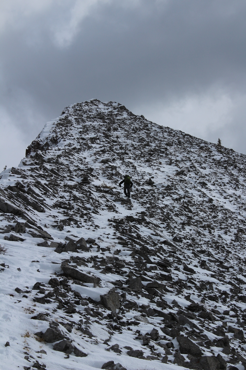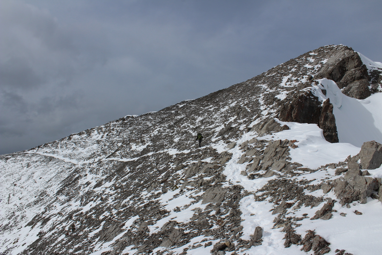 Even though we were lucky enough to have the sun shine down on us, those front range winds are nasty, and we were soon heading back down the connecting ridge.