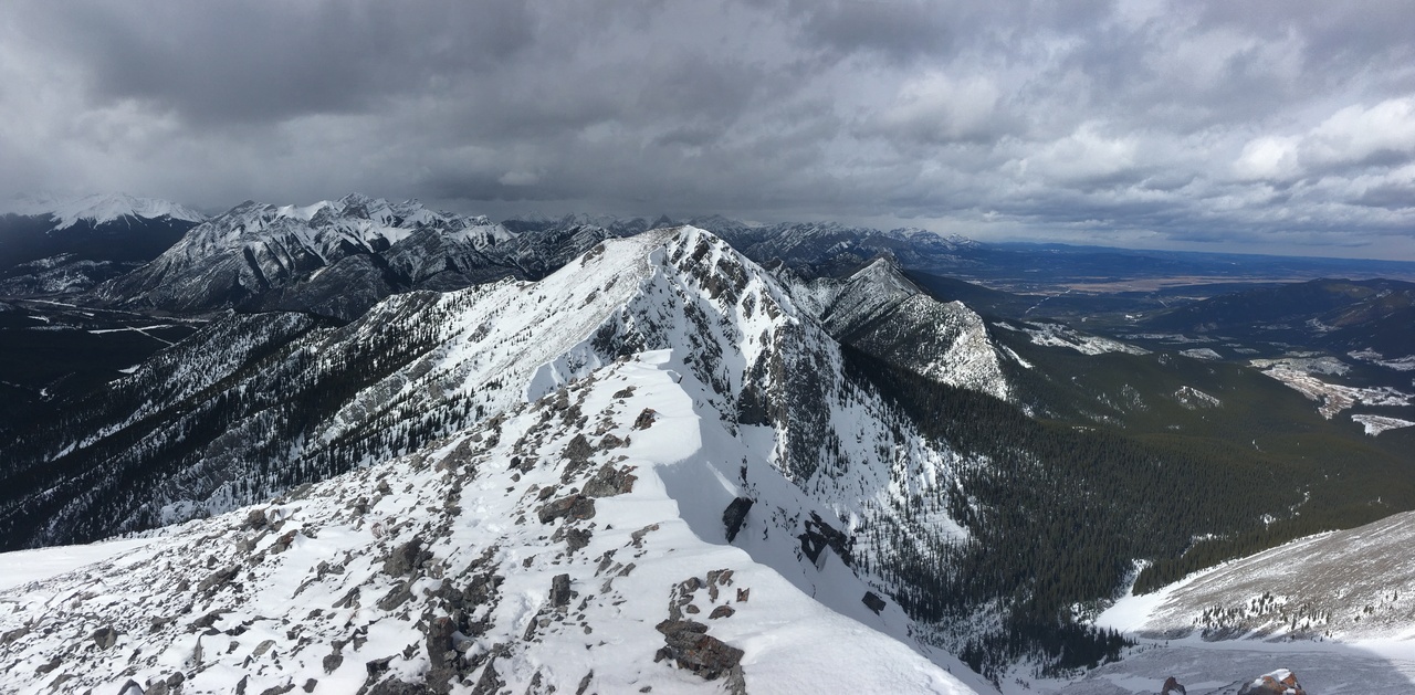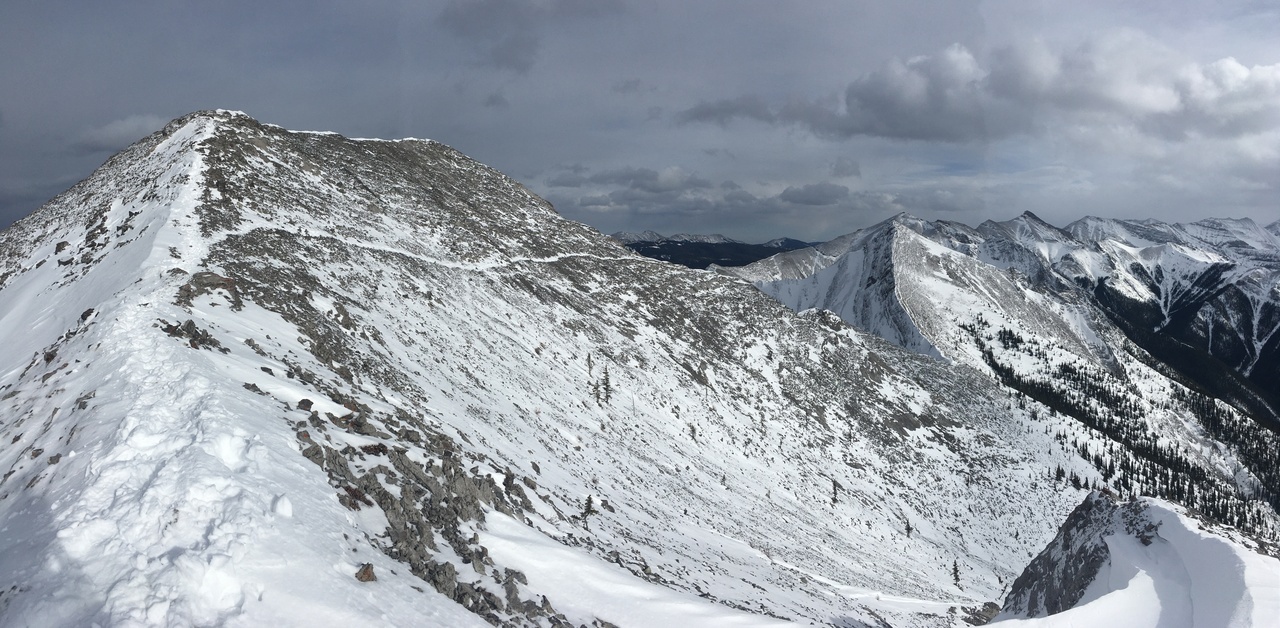 Mount McDougall (left) and Old Baldy Peak (right) rise high above the long Wasootch Ridge!