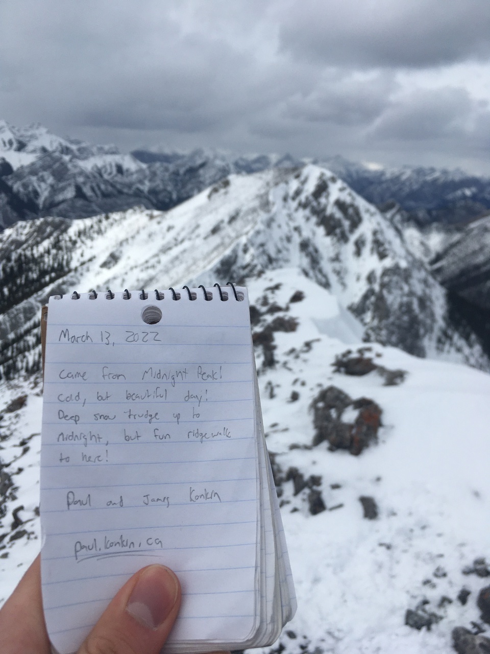 After summiting Midnight Peak, there's the added bonus of having the "option" of bagging Midday Peak while in the area! I say "option", because for me, it isn't really an option! It's impossible to resist a two peak day when most of the work is already done! Needless to say, we continued along the connecting ridge to Midday Peak...and I suggest you do the same! The extension requires minimal effort compared to the trudge up to Midnight, and the views along the heavily corniced ridge are breathtaking, and more than worth the effort!